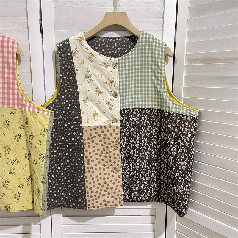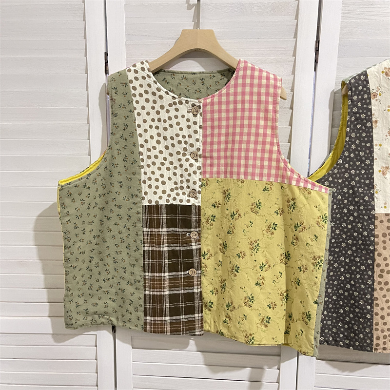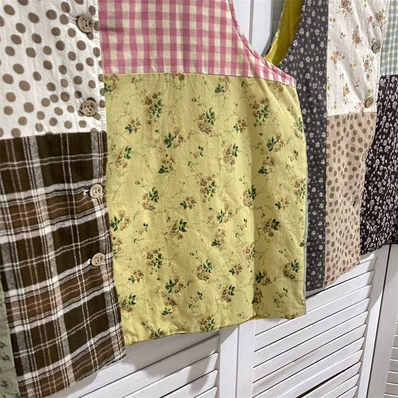 일본 예술적 레트로 불규칙한 패치 워크 면 소프트 왁스 조끼 목가적 인 Baijiafu 조끼 여성 조끼스토어 가기