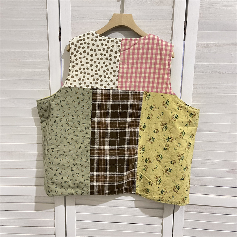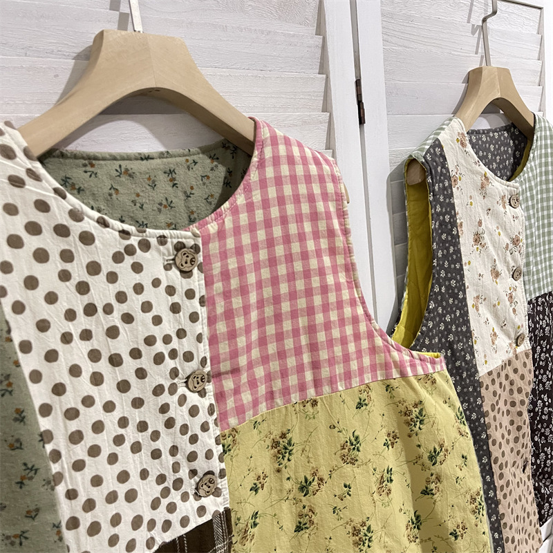 일본 예술적 레트로 불규칙한 패치 워크 면 소프트 왁스 조끼 목가적 인 Baijiafu 조끼 여성 조끼
