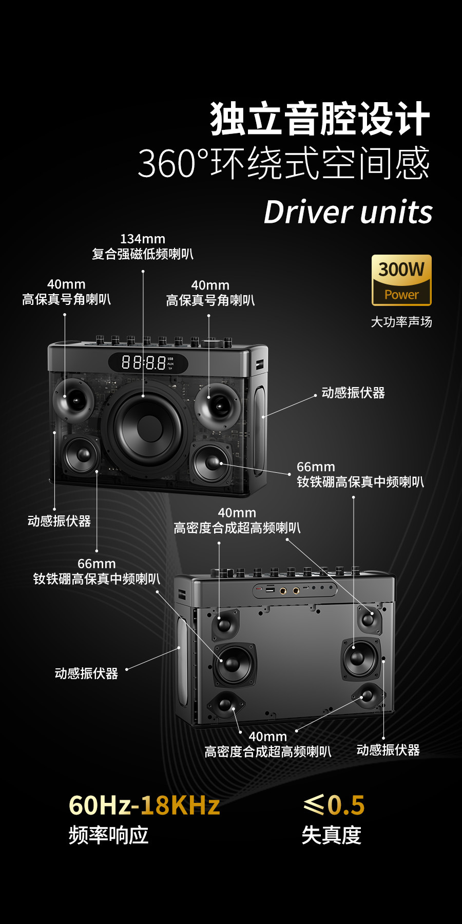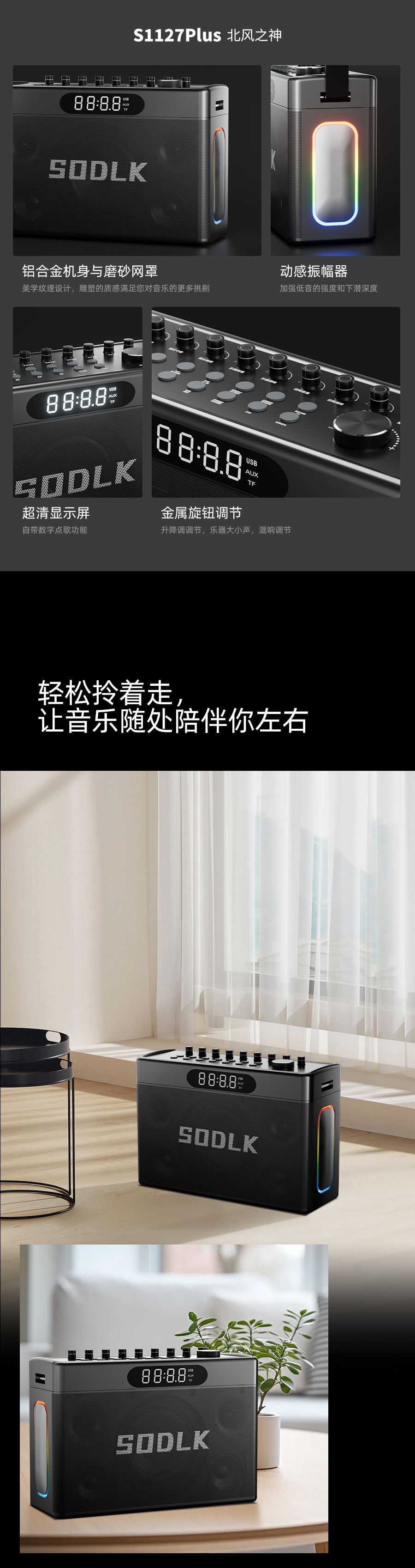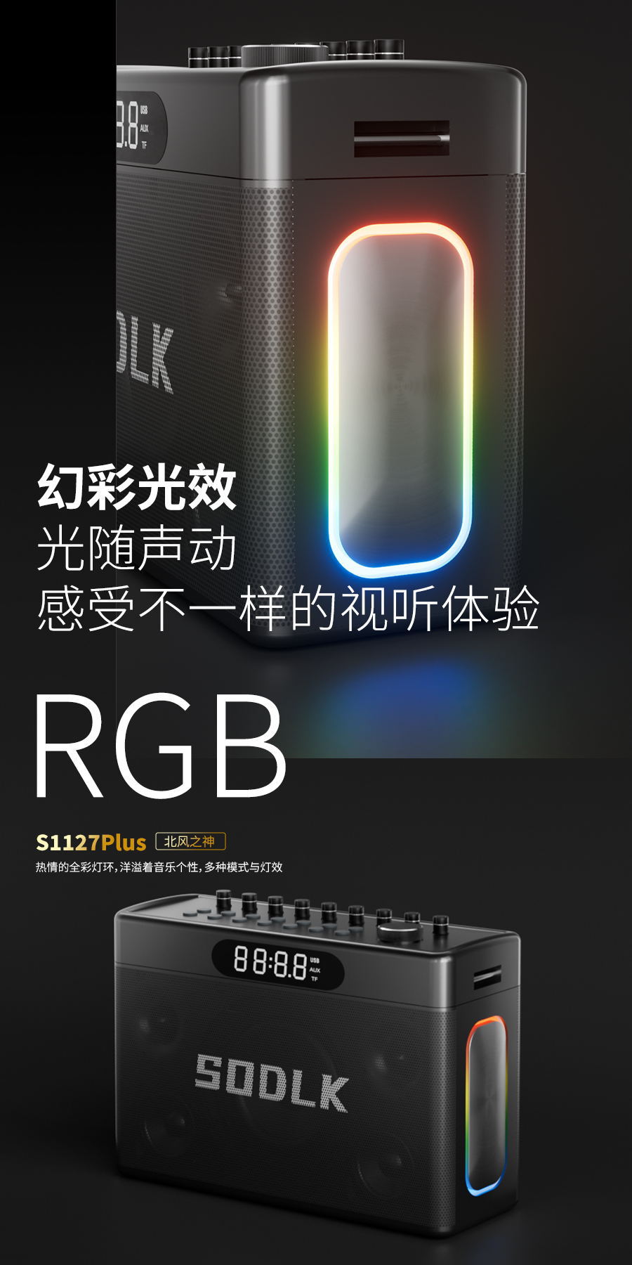 새로운 S1127Plus 디지털 사운드 카드 블루투스 스피커 야외 하이 파워 스퀘어 댄스 오디오 휴대용 스피커
