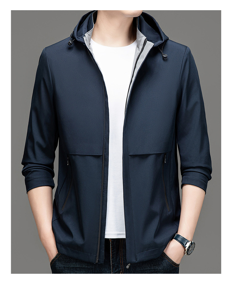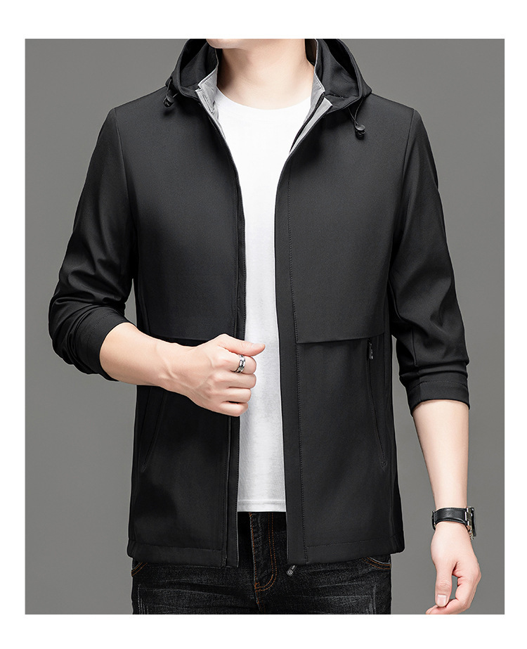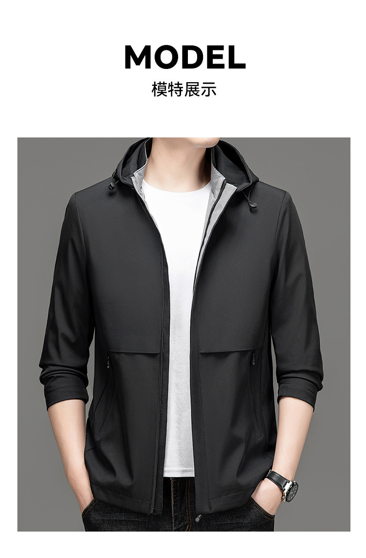 2024 봄과 가을 새로운 후드 재킷 남자의 단색 모든 경기 캐주얼 밀크 실크 비즈니스 캐주얼 코트 재킷