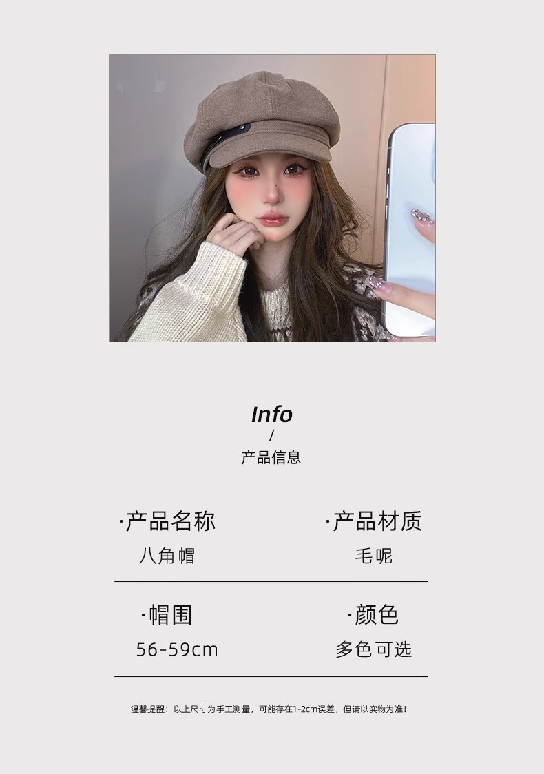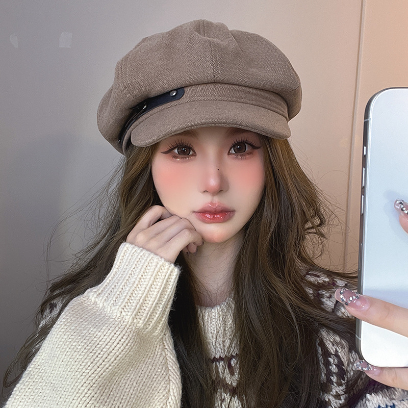 가을 겨울 올매치 모자 남녀 레트로 한국식 문학 팔각형 모자 패션쇼 얼굴 작은 화가 모자 우아한 뉴스보이 모자스토어 가기
