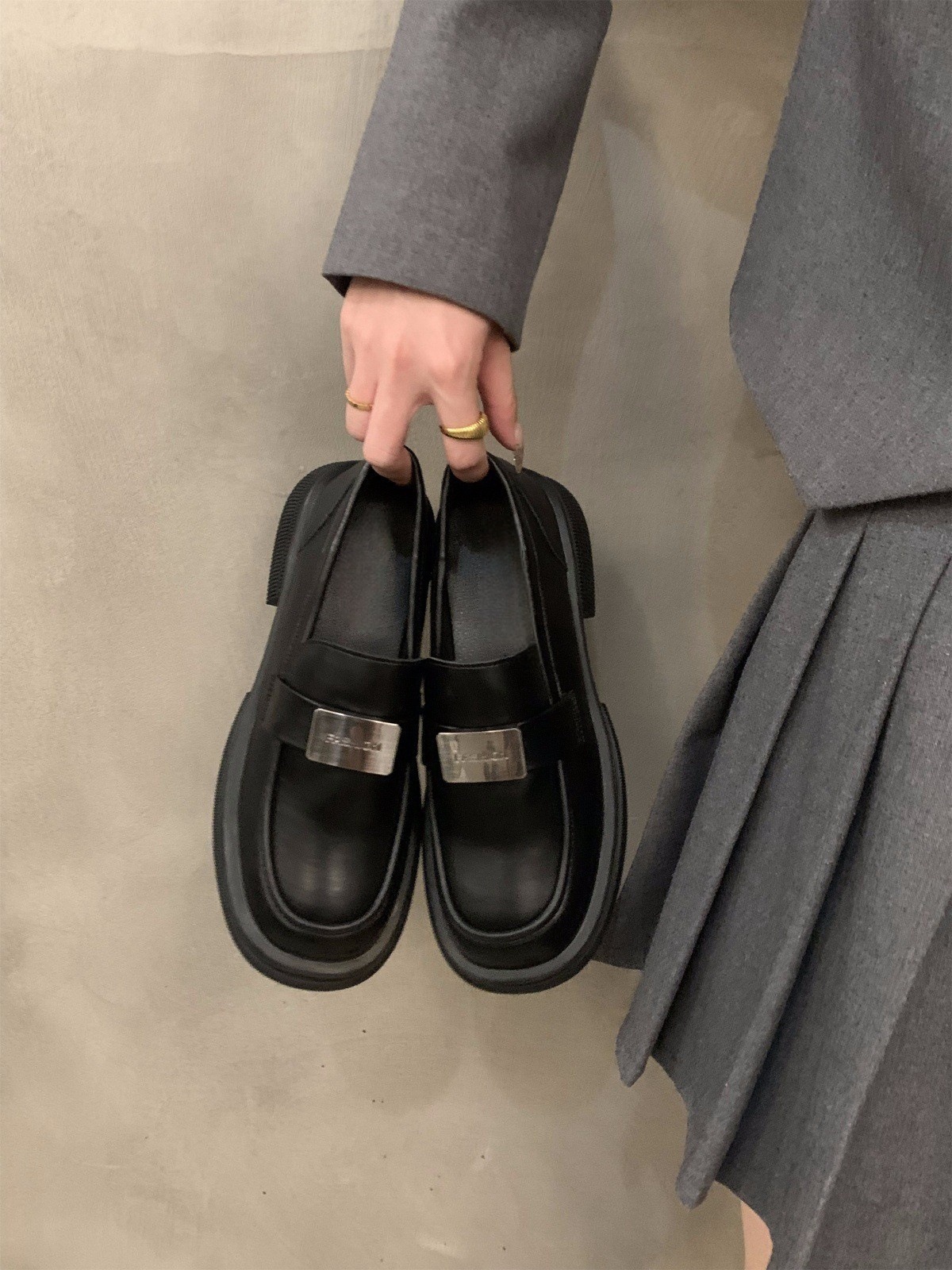 두꺼운 밑창 조커 블랙 Lefu 싱글 신발 여성 신발 2024 새로운 봄과 가을 슬립-영국 스타일 작은 가죽 신발스토어 가기