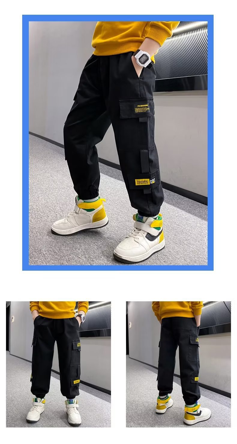 소년 바지 아기의 가을 봄 착용 어린이 작업복 바지 유행 브랜드 잘 생긴 유행 중 큰 어린이 다리 캐주얼 바지 유행