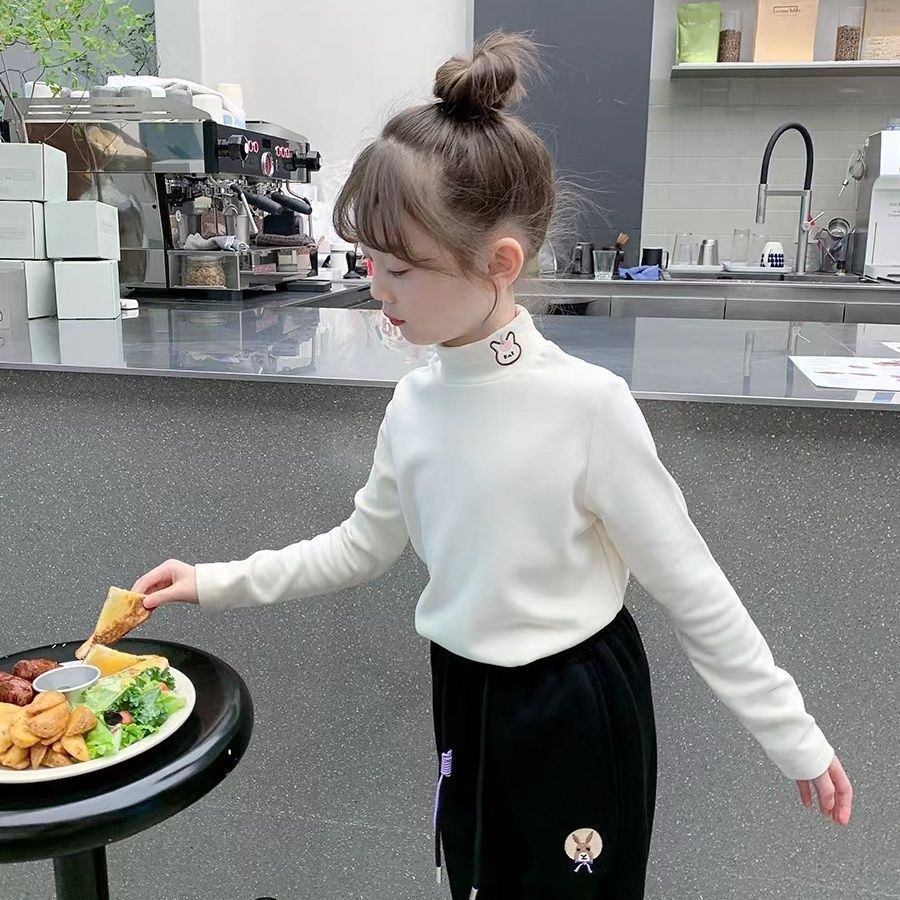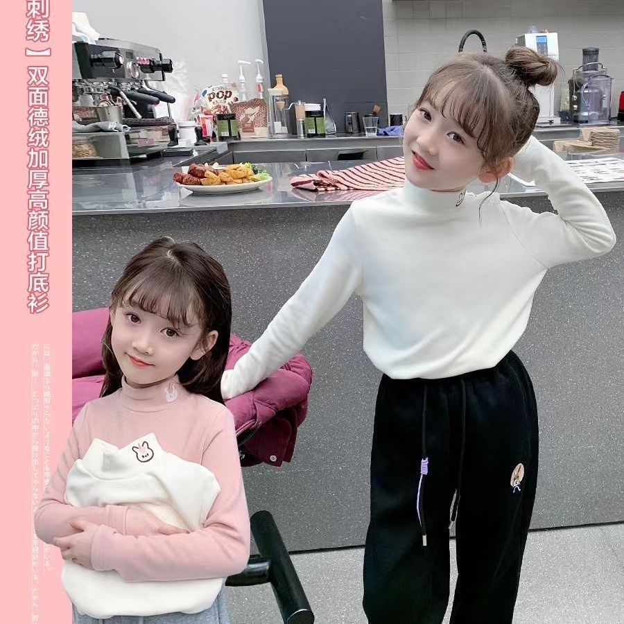 소녀베이스 셔츠 두껍게 양면 양털 반쪽 칼라 아기의 긴팔 티셔츠 서양식 중대형 어린이 안쪽 따뜻한 탑스토어 가기