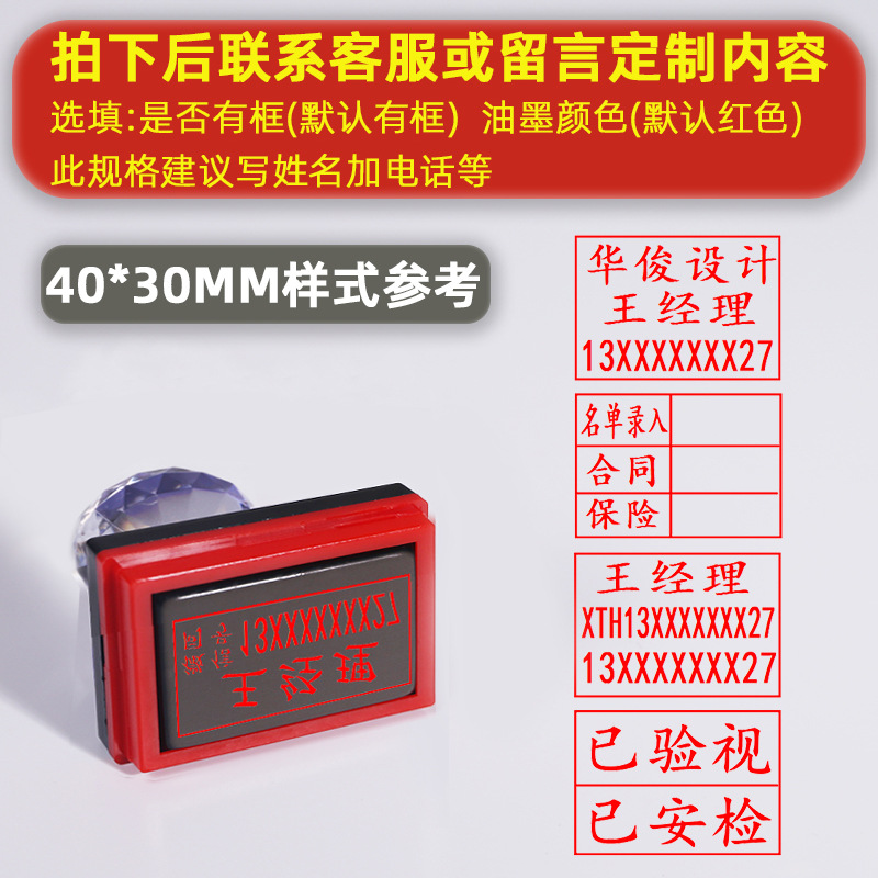 맞춤형 감광성 인감 이름 전화 2 차원 코드 전체 사양 다양한 인쇄 오일 개인 씰 검토 조각 씰