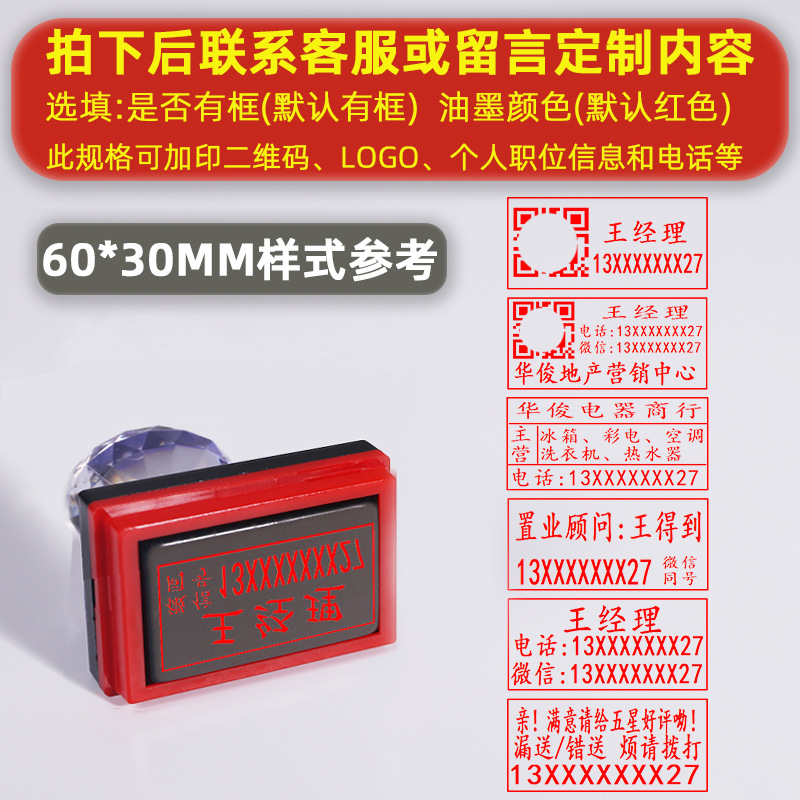 맞춤형 감광성 인감 이름 전화 2 차원 코드 전체 사양 다양한 인쇄 오일 개인 씰 검토 조각 씰스토어 가기