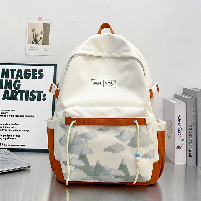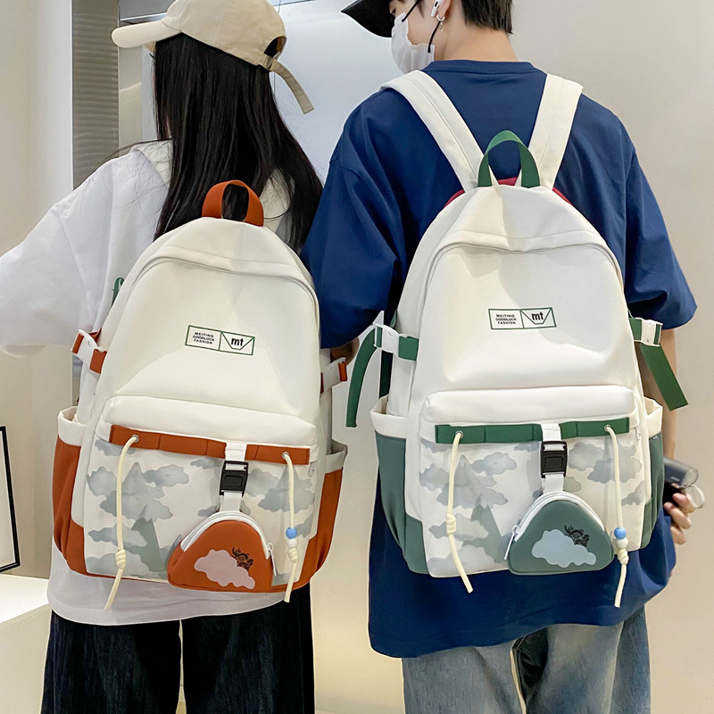 패션 새로운 컬러 대비 배낭 유니섹스 커플 가방 대용량 학생 가방 경량 인쇄 가방스토어 가기