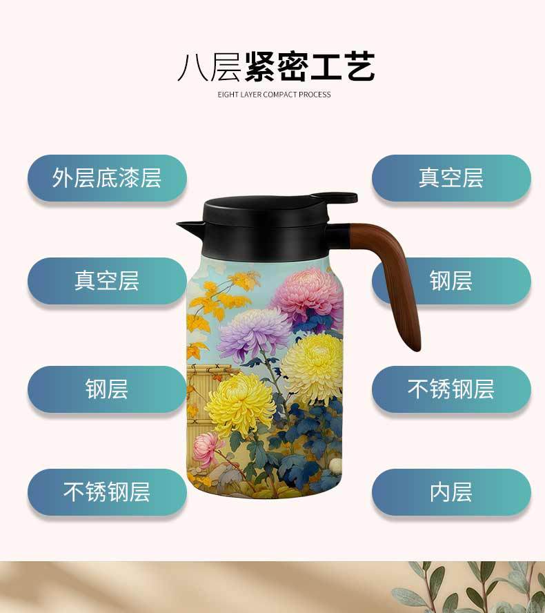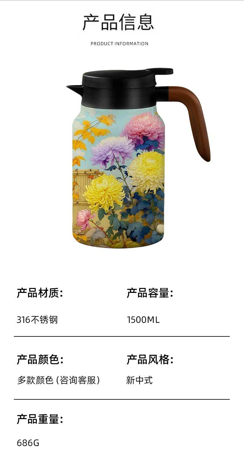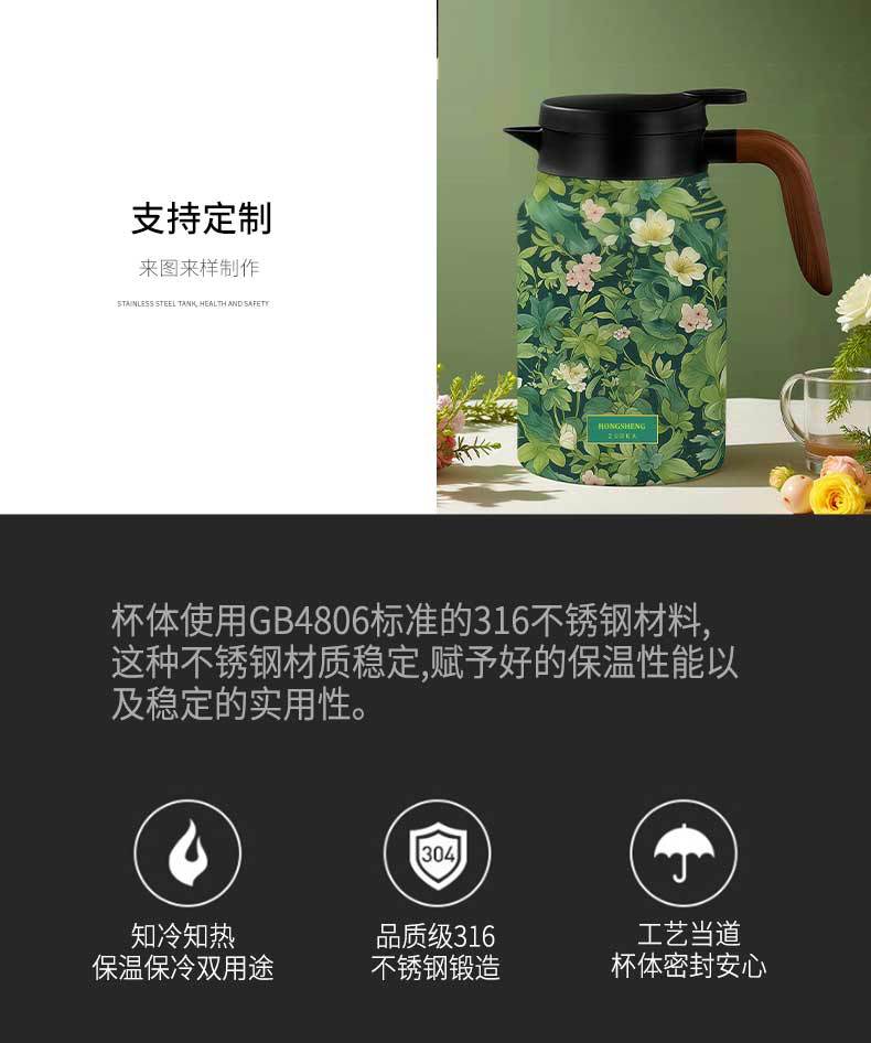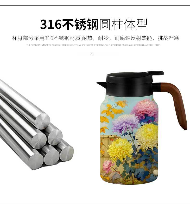 2024 새로운 스타일 찐 주전자 316 스테인레스 스틸 열 보존 냄비 차 물 분리 가정용 주전자 간단한 대용량스토어 가기