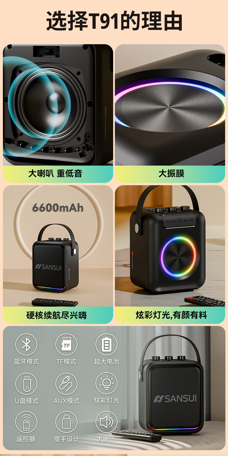 Shanshui 새로운 T91 블루투스 스피커 야외 K 노래 전용 서브 우퍼 휴대용 자동차 휴대용 카드 소형 스테레오