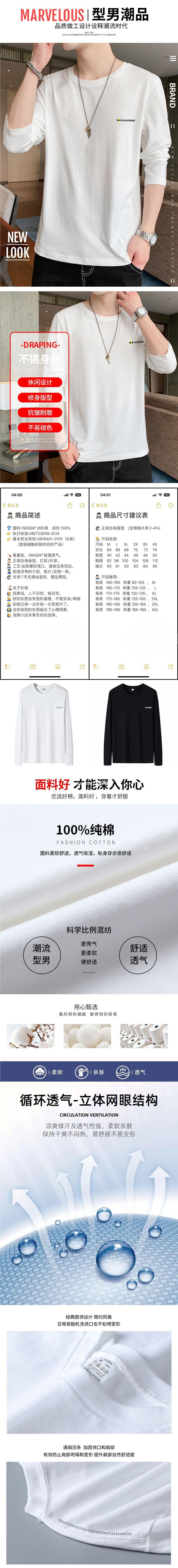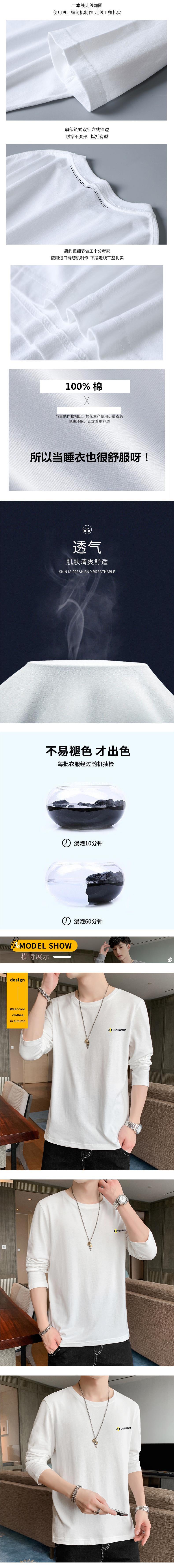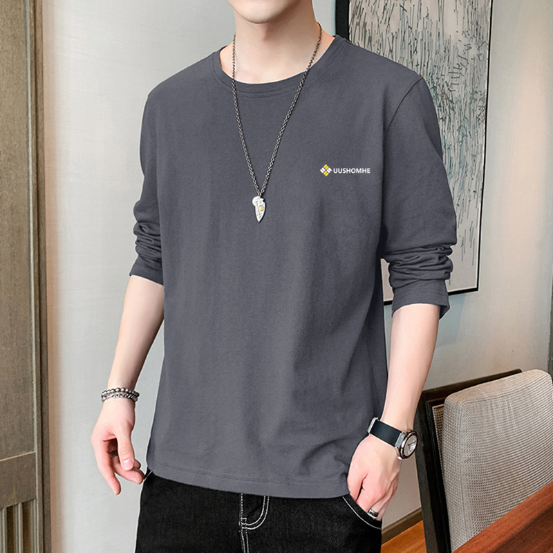 100% 순수/면 긴 소매 티셔츠 남성 가을 얇은 땀 흡수 야외 스포츠 작업 태양 보호 옷베이스 셔츠 인쇄