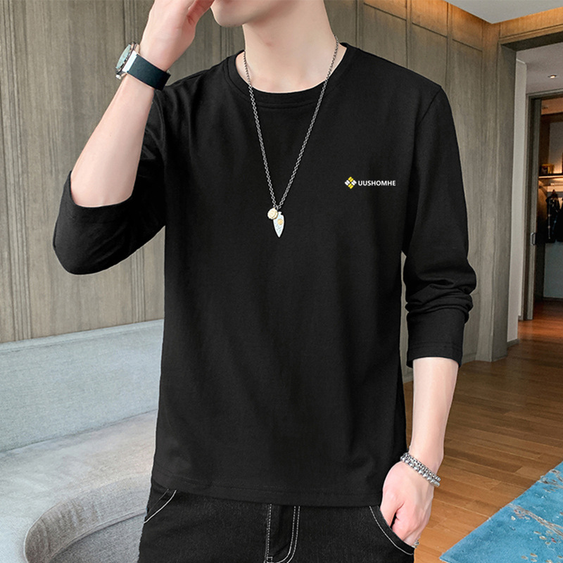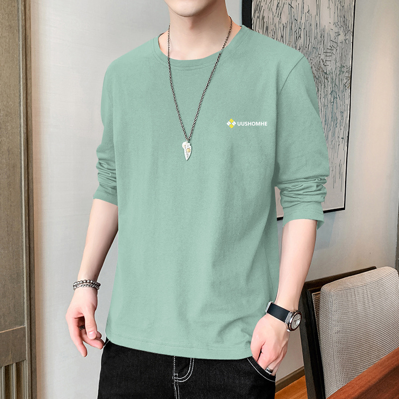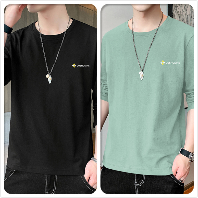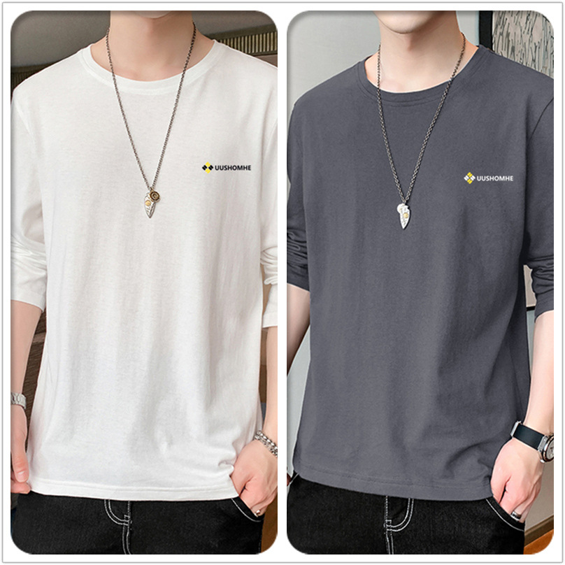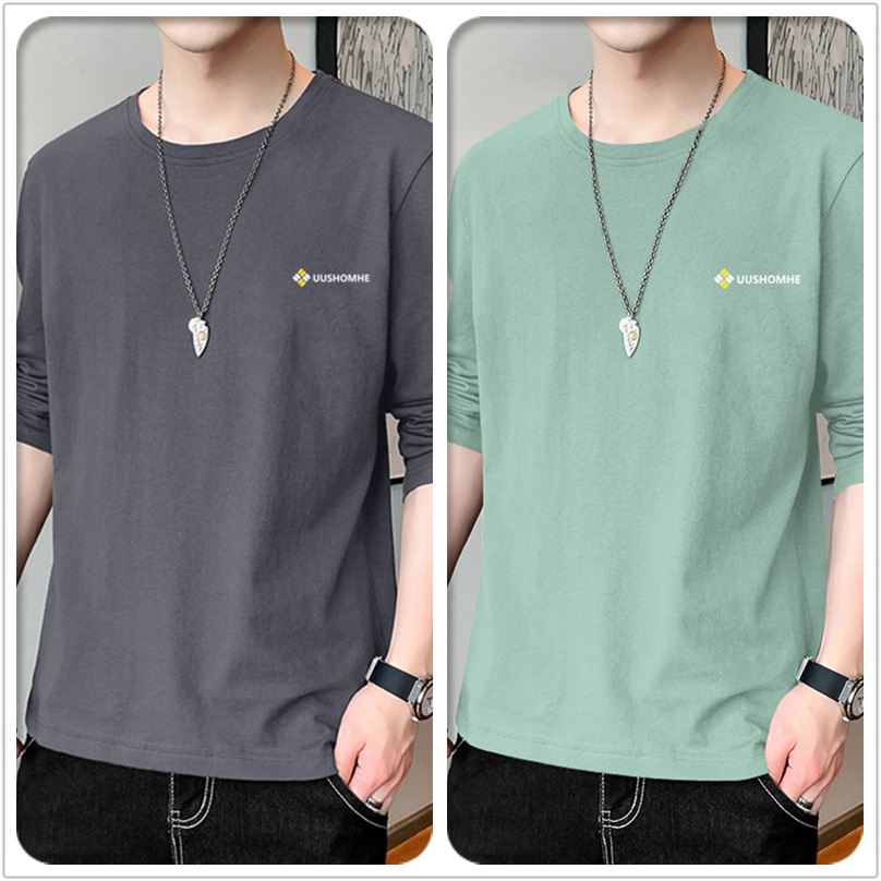 100% 순수/면 긴 소매 티셔츠 남성 가을 얇은 땀 흡수 야외 스포츠 작업 태양 보호 옷베이스 셔츠 인쇄스토어 가기