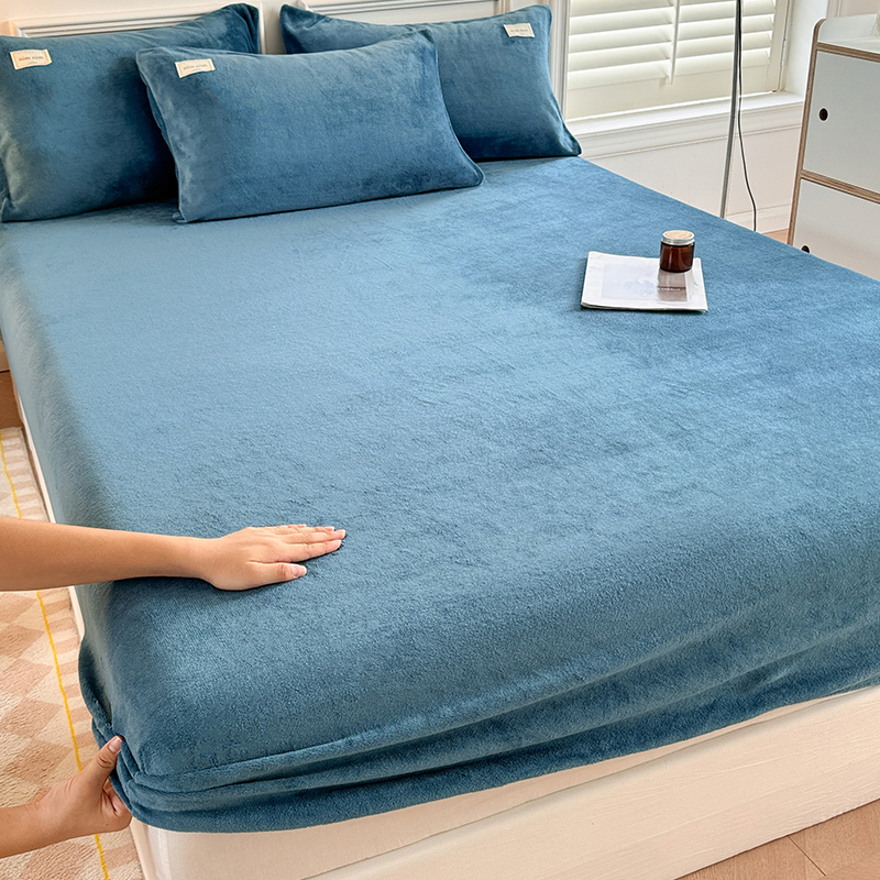 겨울 두꺼운 우유 벨벳 침대 커버 침대 모자 커버 2024 새로운 산호 벨벳 매트리스 보호 커버 침대 시트 3 피스 세트