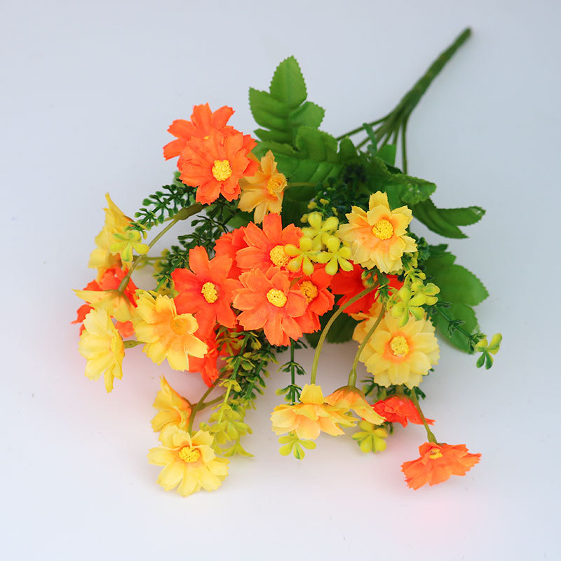 싱글 데이지 점프 오키드 실크 꽃 가짜 꽃 거실 장식 말린 꽃 실내 및 실외 꽃 상자 플라스틱 꽃 삽입