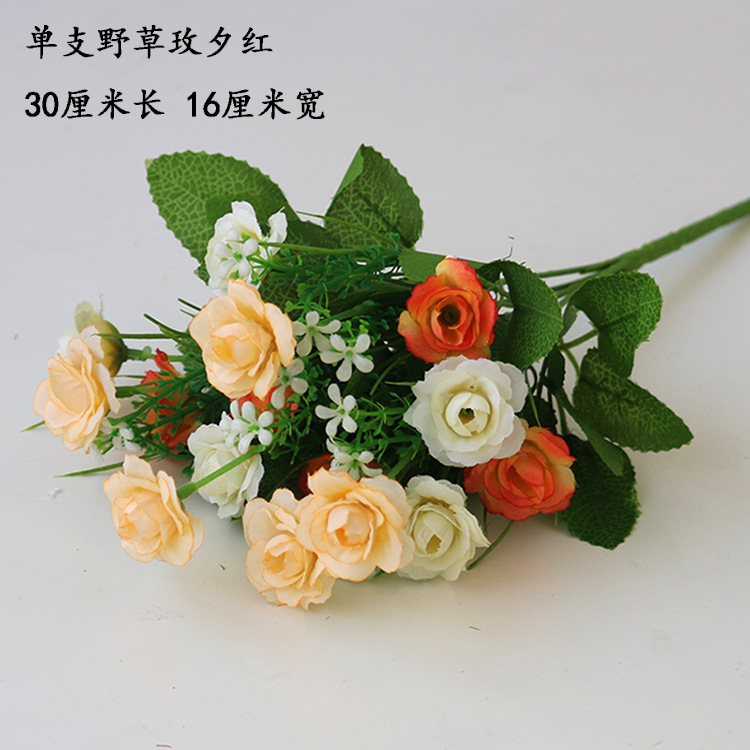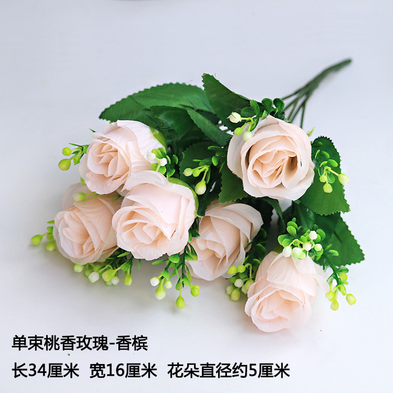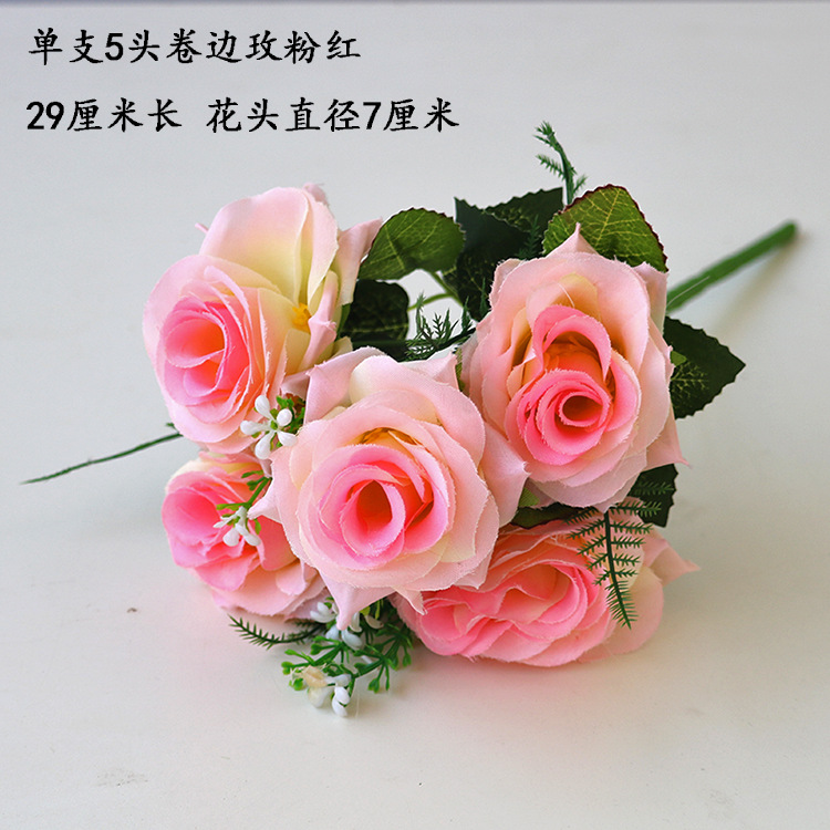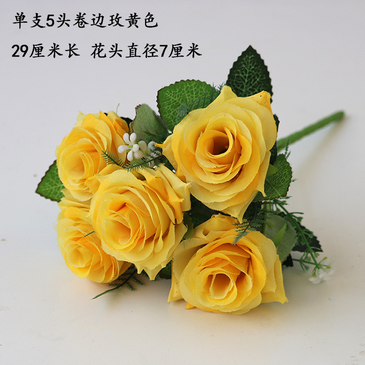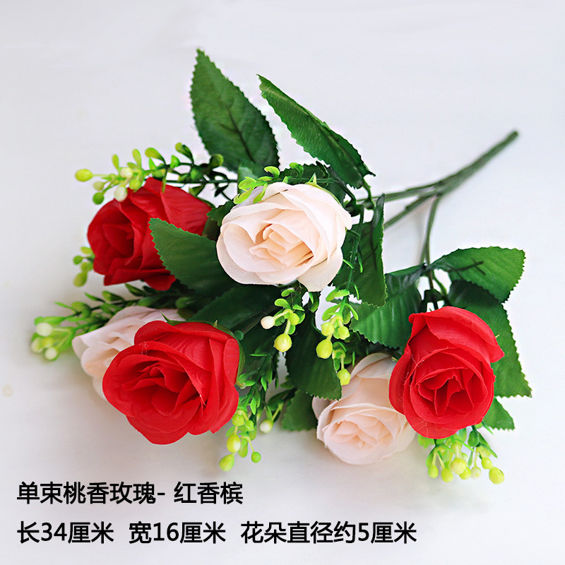 • 형광 노란색 6갈래 복숭아 장미 샴페인 레드