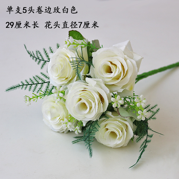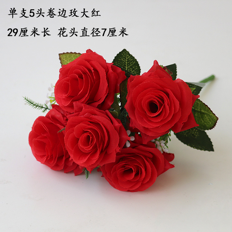• 유백색 5갈래 컬링 로즈 브라이트 레드