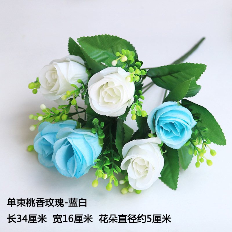 • 샴페인 6갈래 복숭아 장미 흰색과 파란색