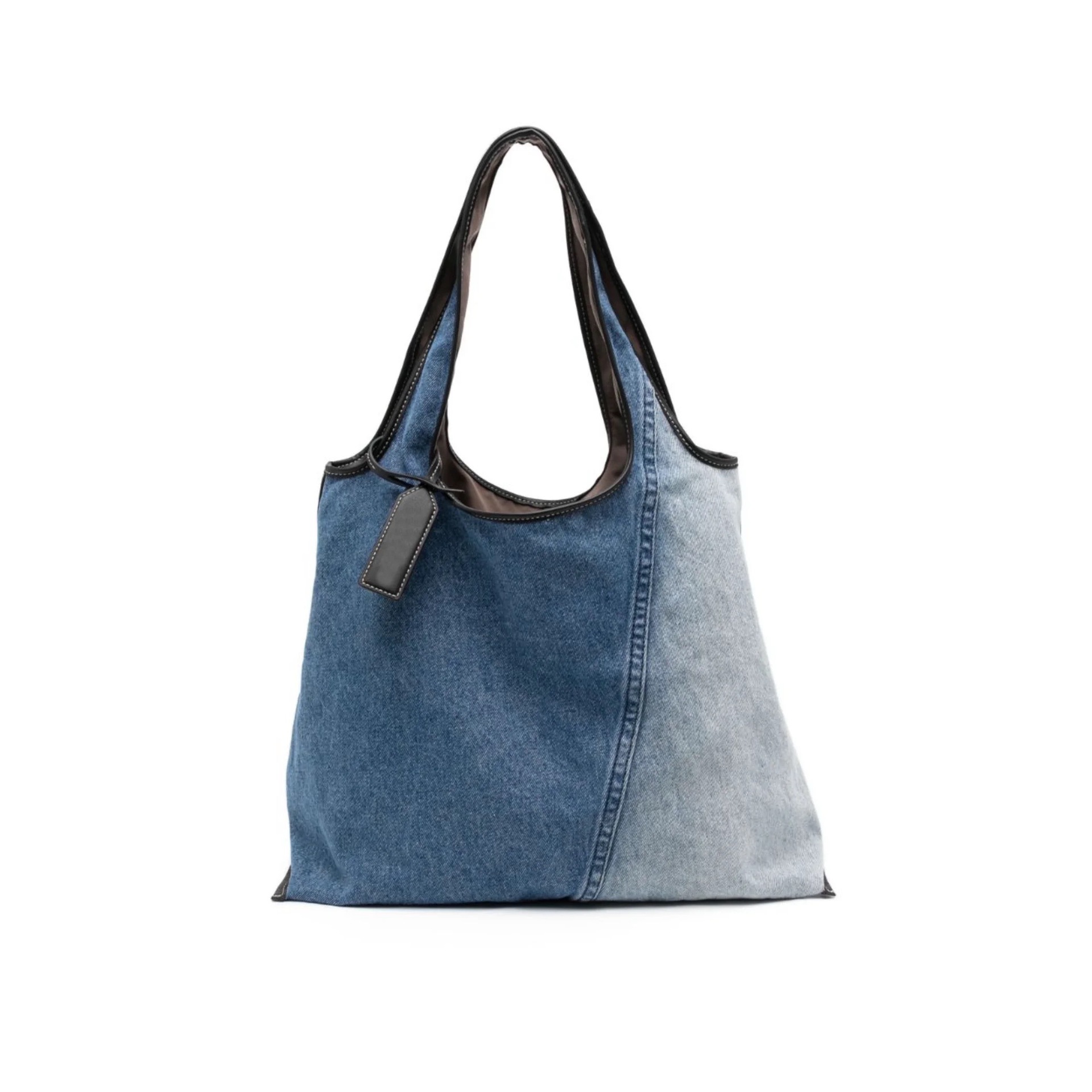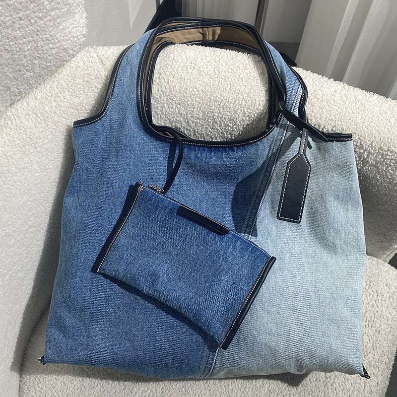 Xiaozhong 2024 새로운 어깨 핸드백 대비 데님 바느질 토트 백 여성용 대용량 언더암 가방