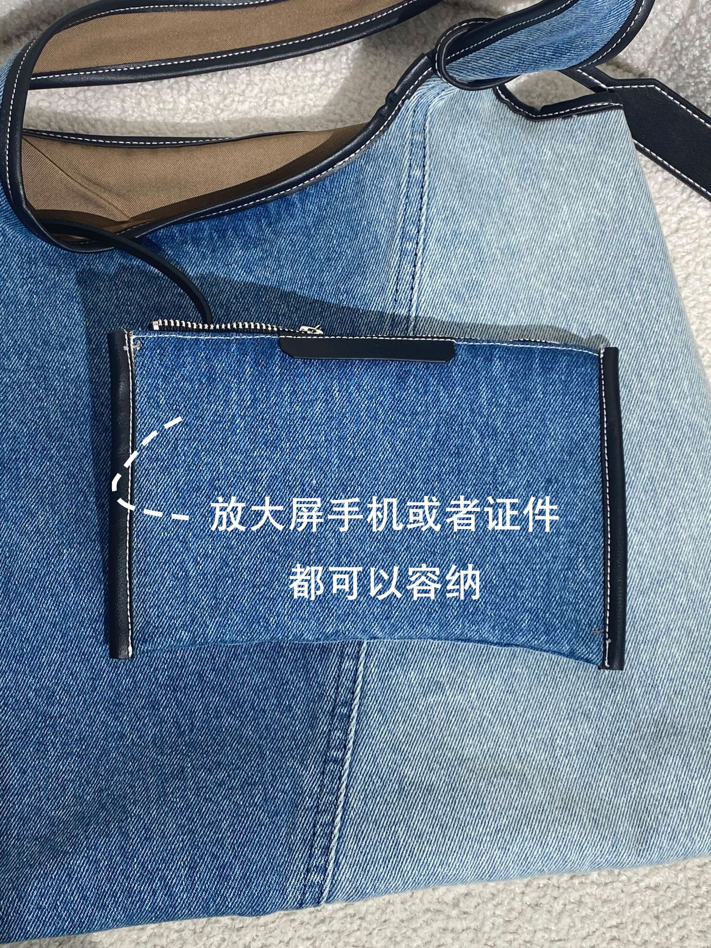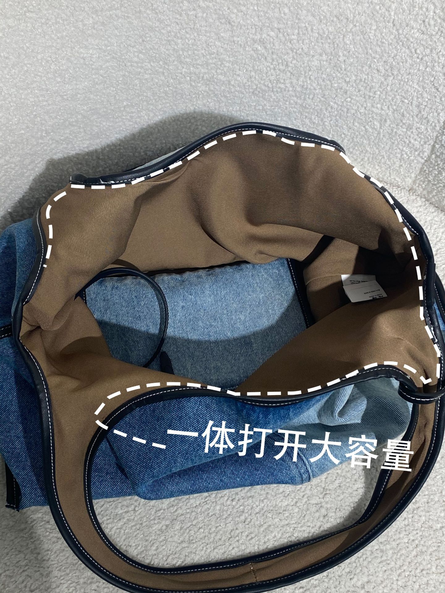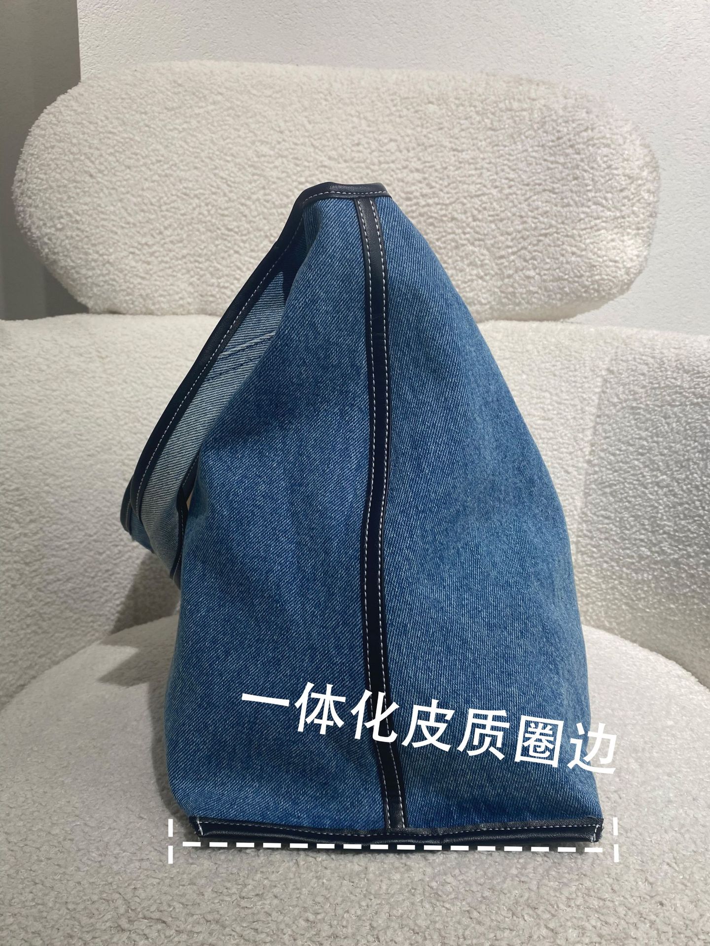 Xiaozhong 2024 새로운 어깨 핸드백 대비 데님 바느질 토트 백 여성용 대용량 언더암 가방스토어 가기