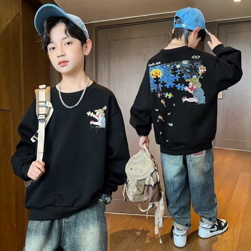 남아용 봄가을 스웨트셔츠 2025 신상 가을 상의 중대형 어린이 남아용 멋진 가을옷 힙스터 스타일스토어 가기
