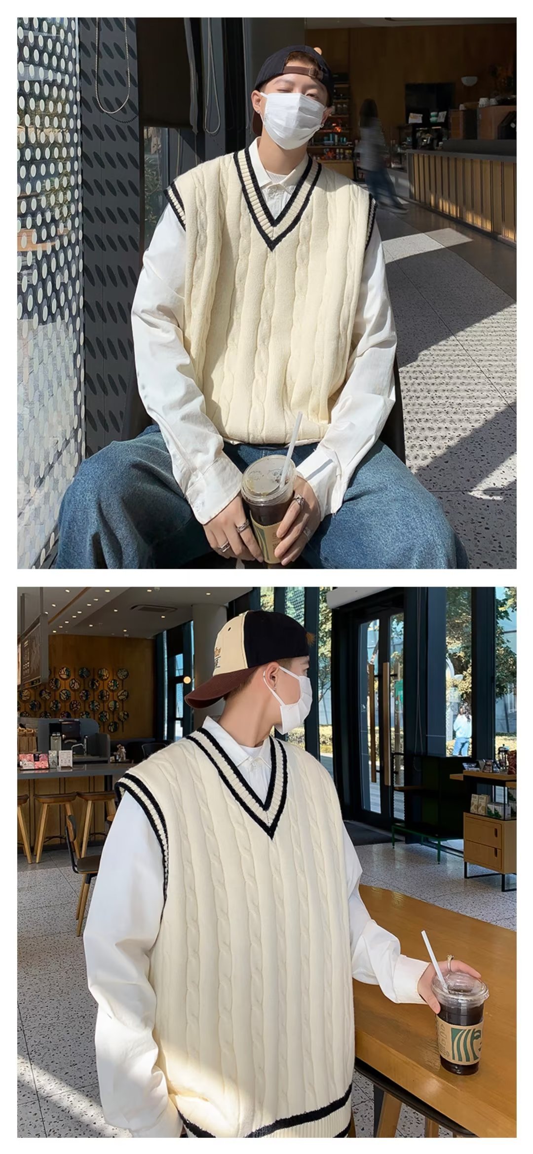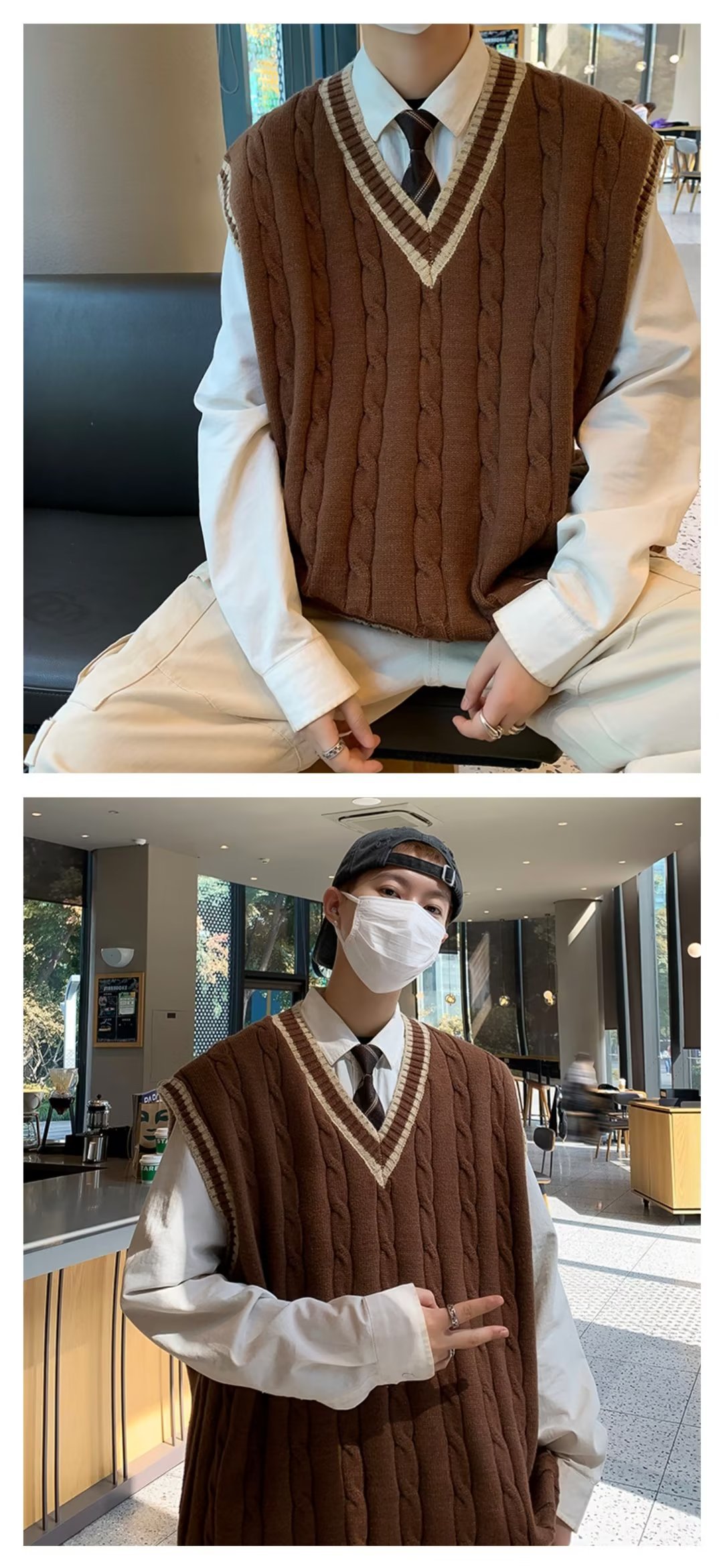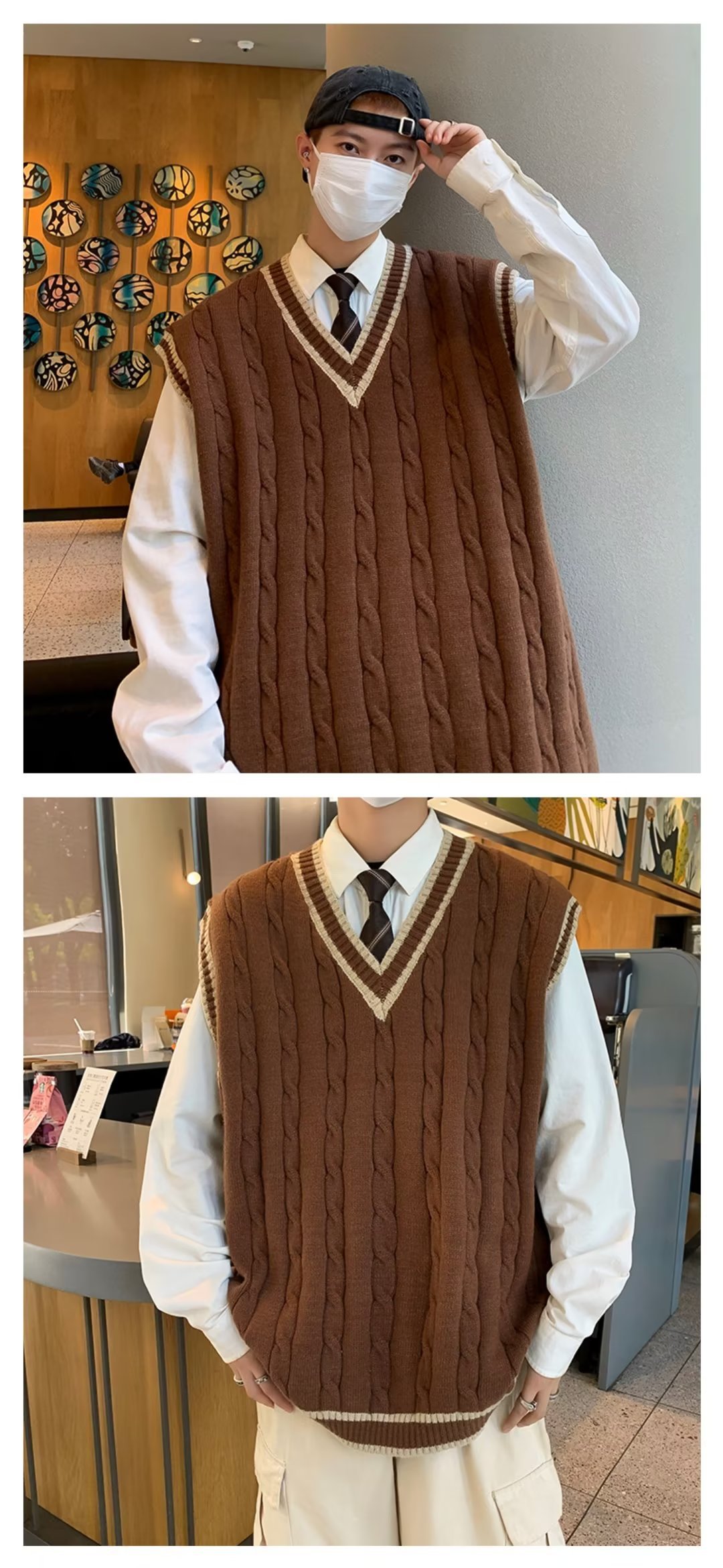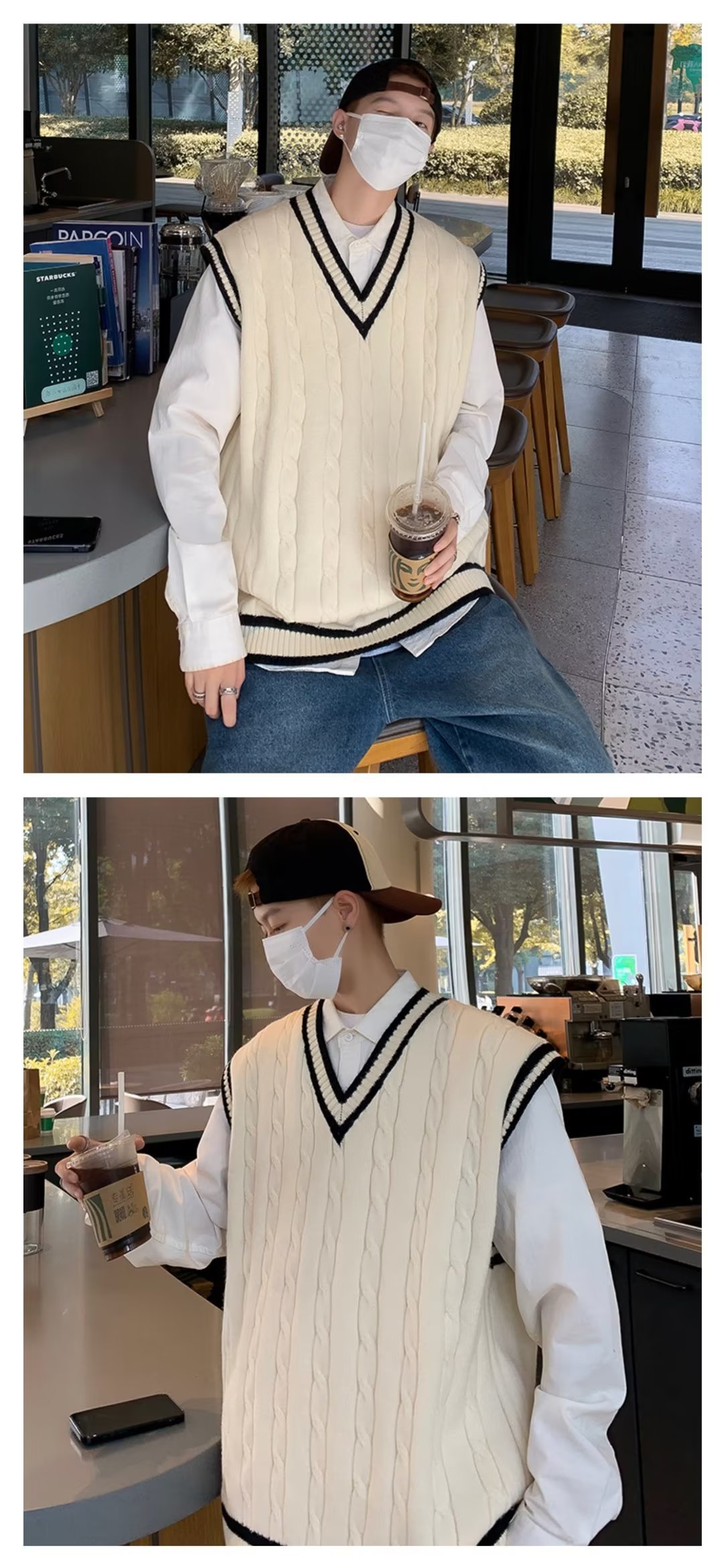 아메리칸 스타일 스웨터 조끼 남자의 가을과 겨울 Ins 패셔너블 루즈 V 넥 웨이슬 니트 일본 스타일 대학 스타일 조끼 스웨터스토어 가기