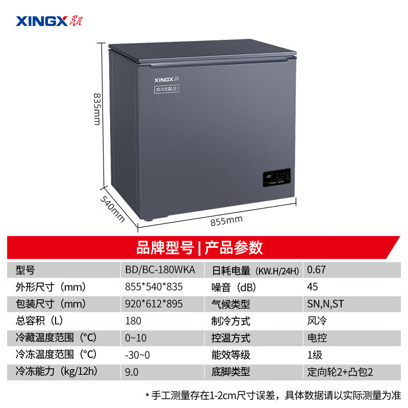 스타 냉동고 180 리터 가정용 상업용 냉동고 공랭식 서리 프리-30 도 냉장고 냉동고 단일 온도 수평 냉장고