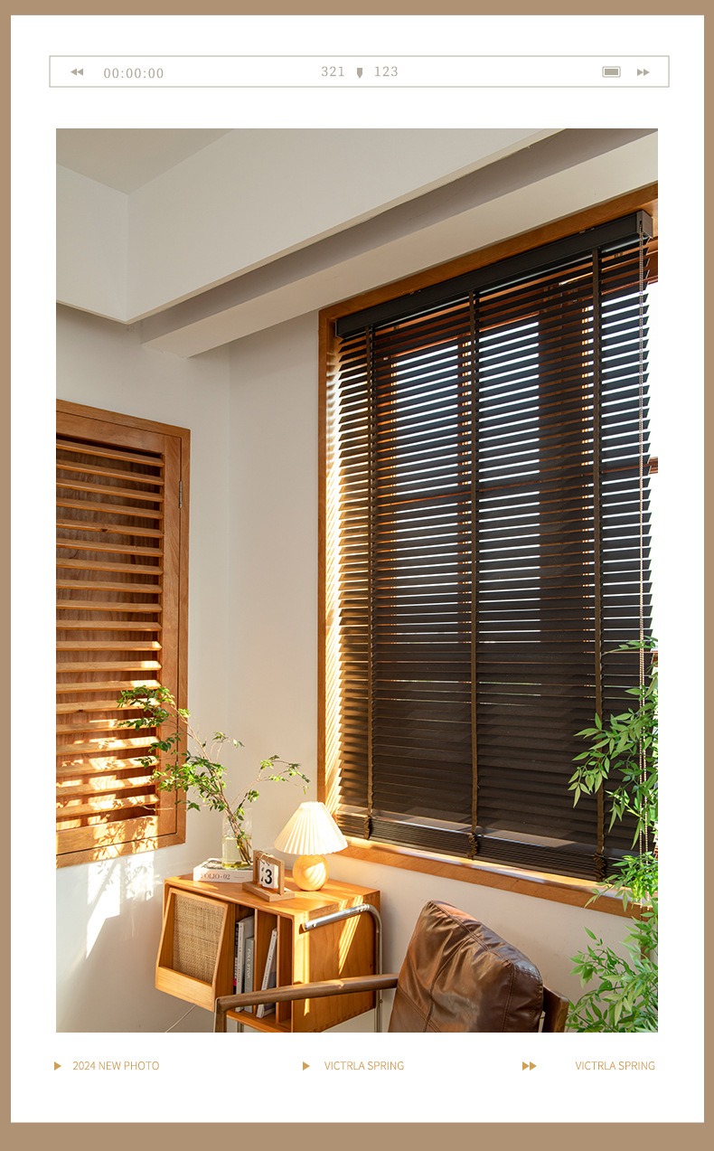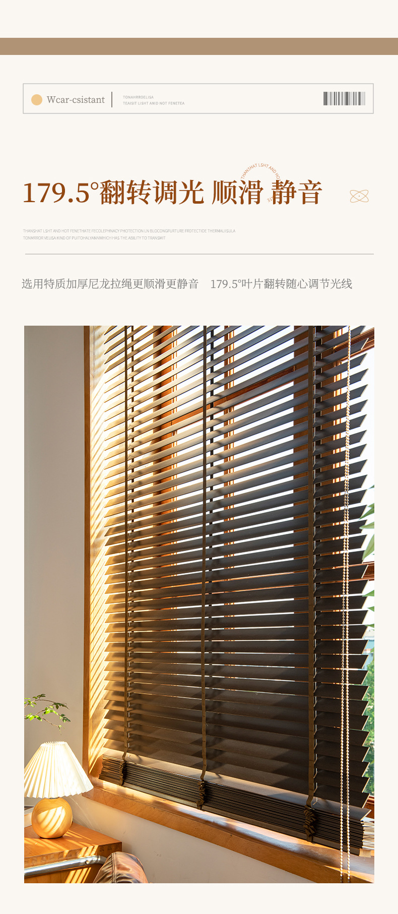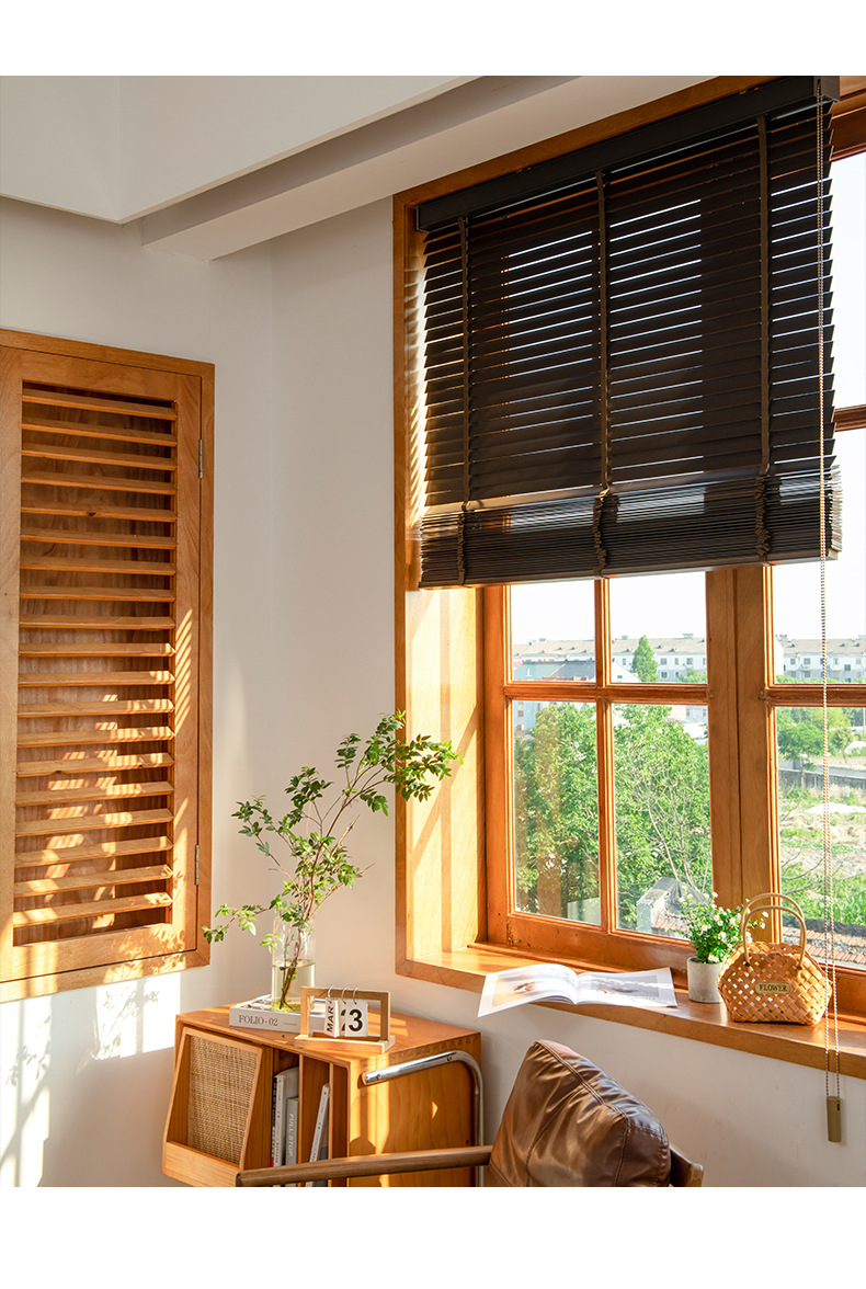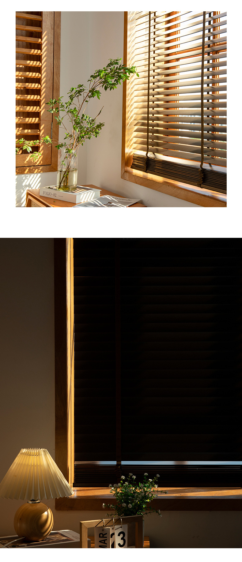 단단한 나무 베네치아 블라인드 5cm 너비의 잎 바스 우드 소재 4 대 1 구슬 거실 식당 연구스토어 가기