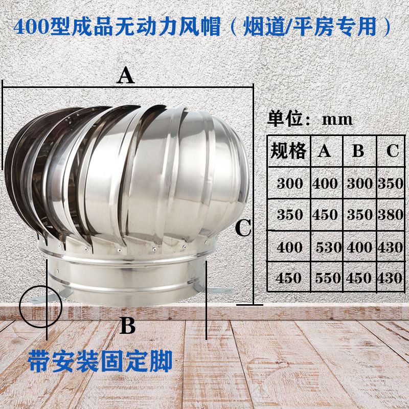 완성 된 304 스테인레스 스틸 무동력 바람 캡 파이프 110/160/200/300 배기 지붕 환기 공