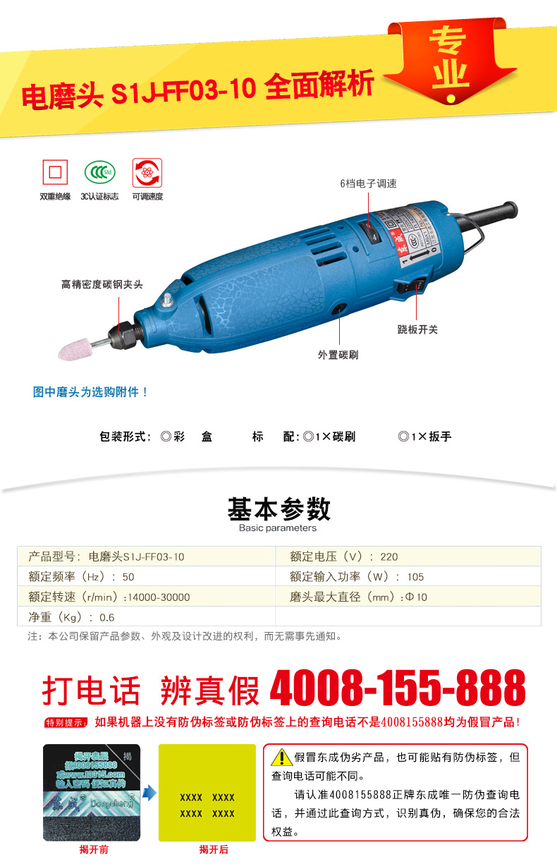 동청 전기 공구 전기 연삭 헤드 S1J-FF03-10 내부 구멍 기계 스트레이트 밀 조정 가능한 속도 전기 연삭스토어 가기