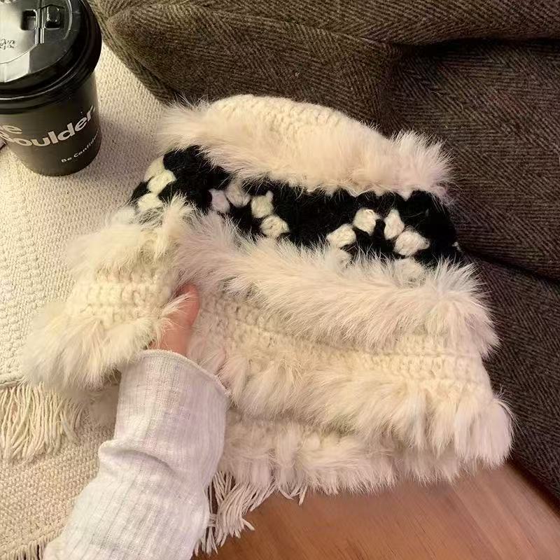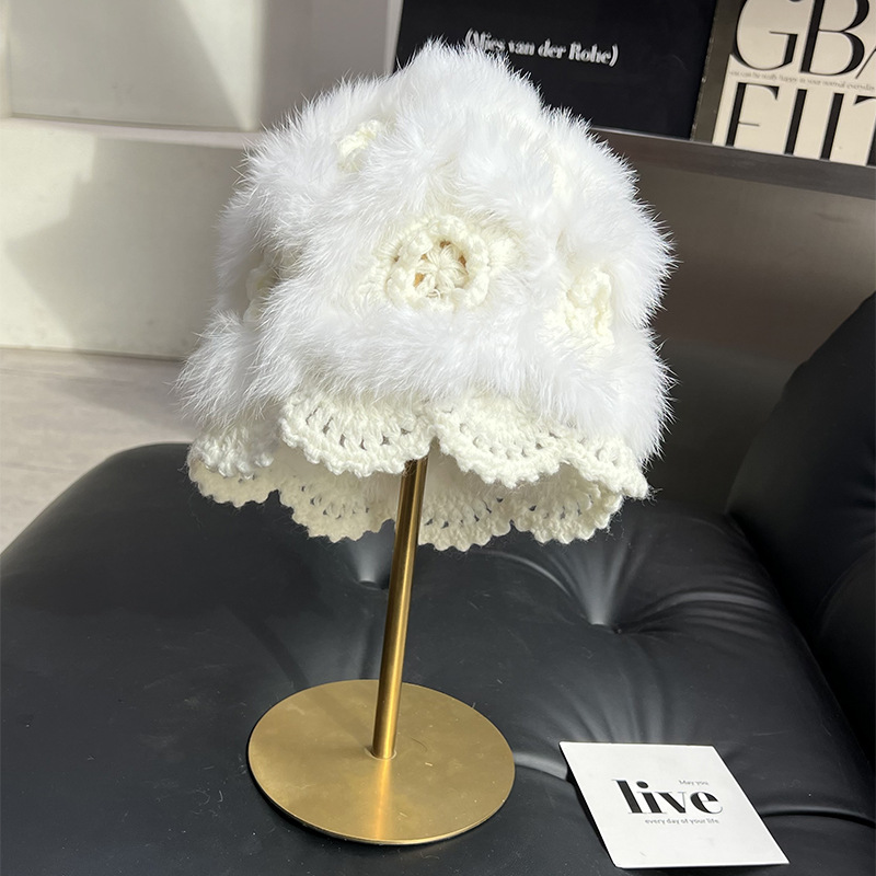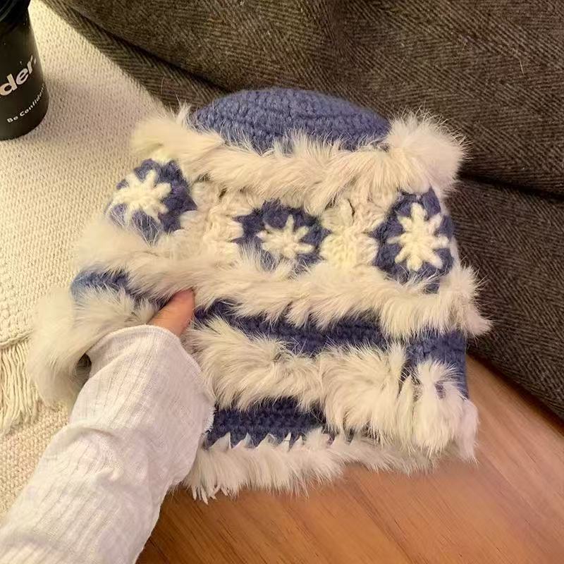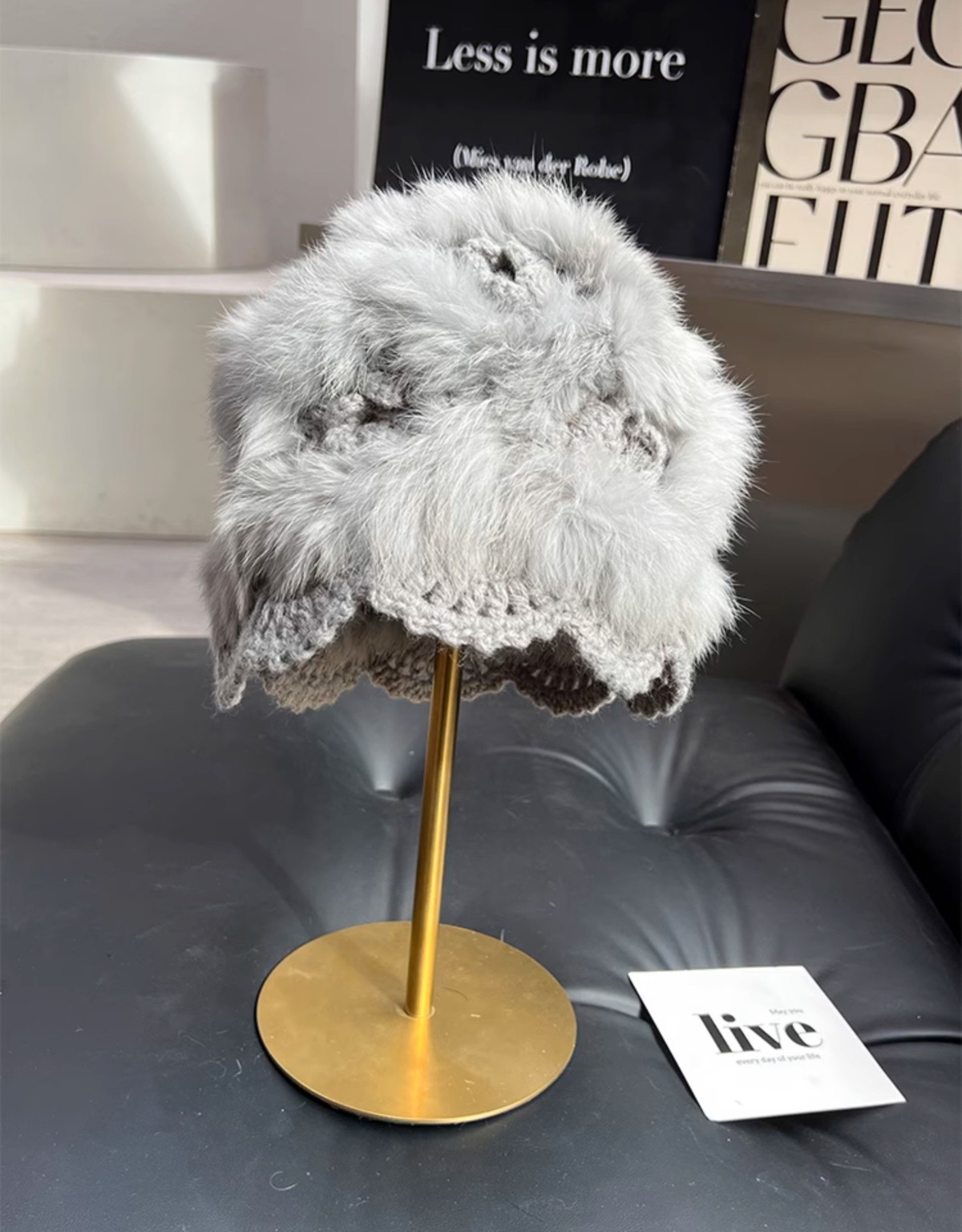 마오 마오 모자 진짜 모피 토끼 봉제 모피 모자 한국식 올매치 방한식 따뜻한 양모 니트 발가락 모자 여자 겨울스토어 가기