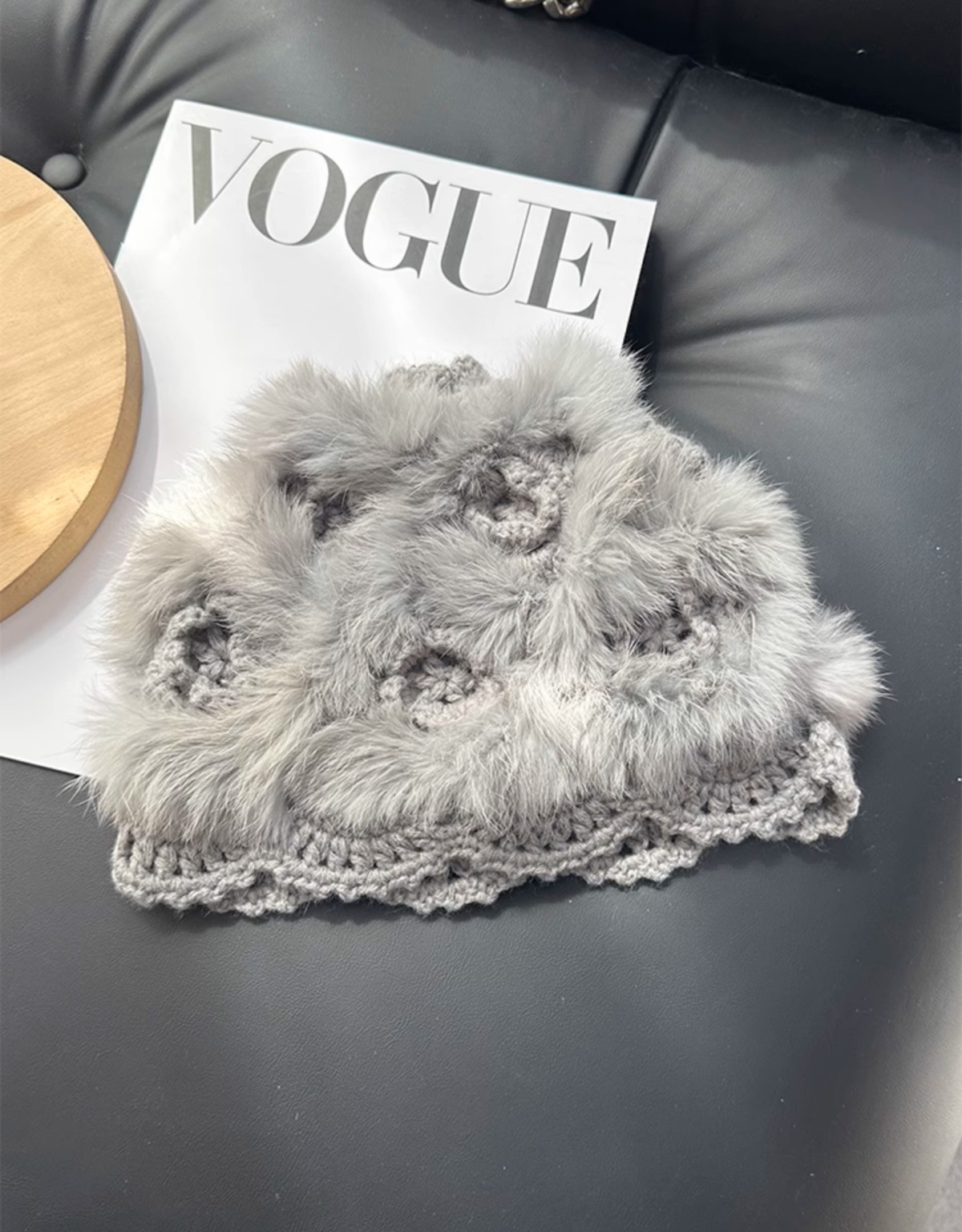 마오 마오 모자 진짜 모피 토끼 봉제 모피 모자 한국식 올매치 방한식 따뜻한 양모 니트 발가락 모자 여자 겨울