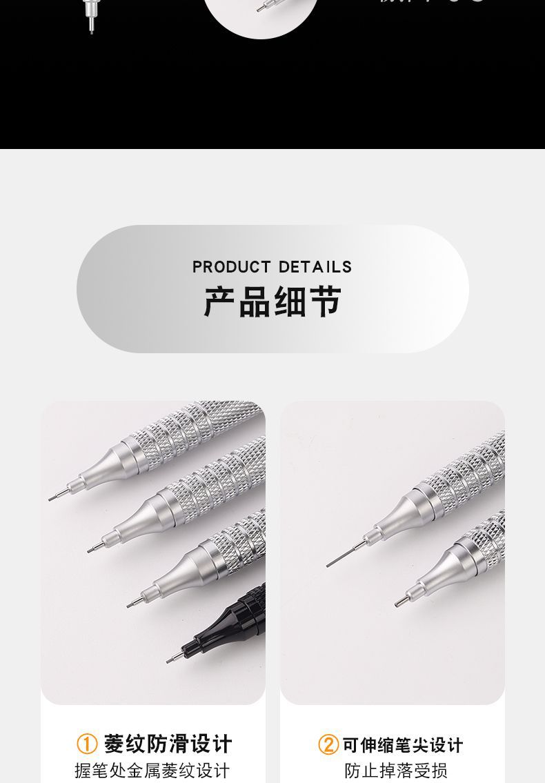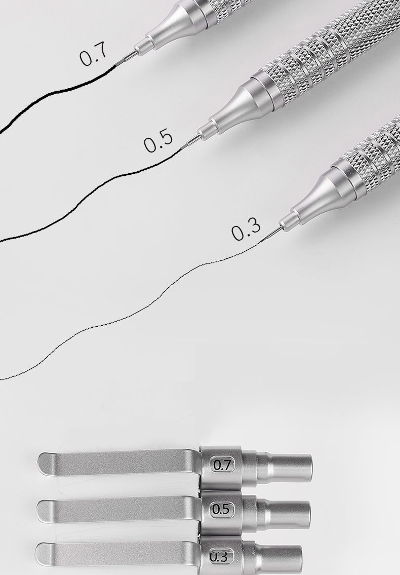 금속 자동 연필 드로잉 그림 0.3/0.5/0.7mm 낮은 무게 중심 전문 자동 펜 연속 코어 느낌