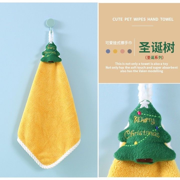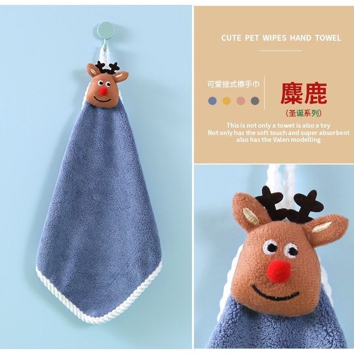 크리스마스 선물 매달려 손을 닦는 수건 산호 양털 흡수성 수건 가정용 주방 욕실 만화 매달려 수건