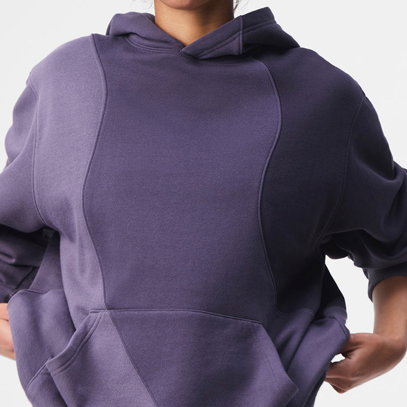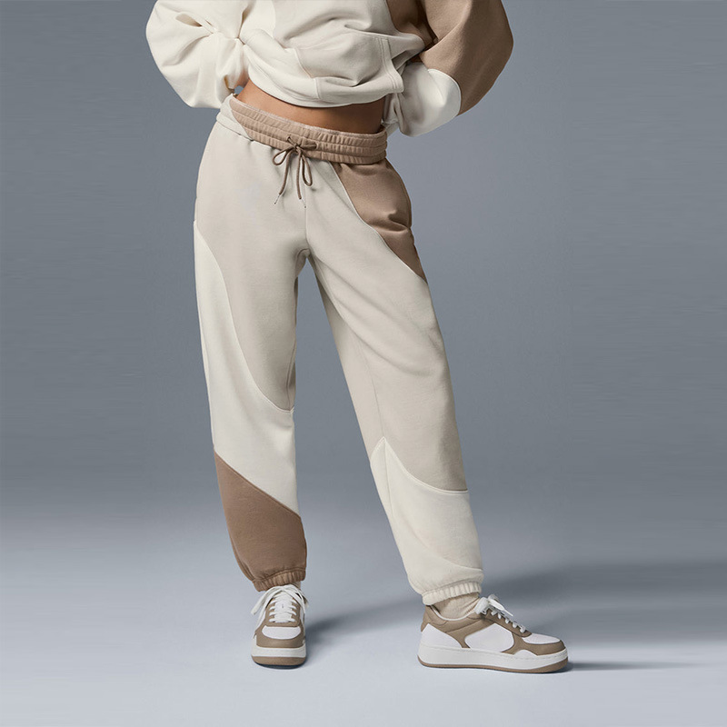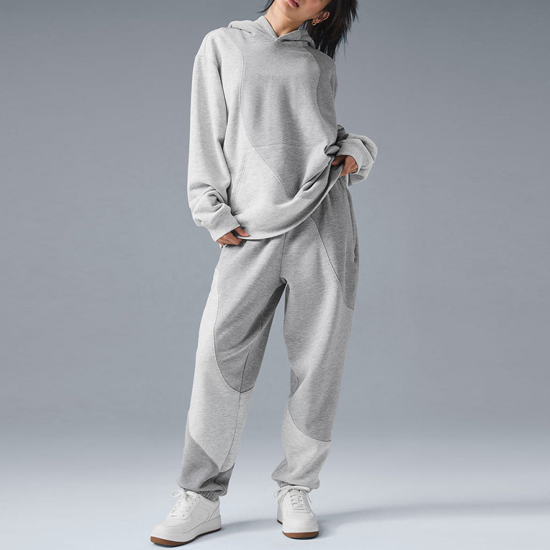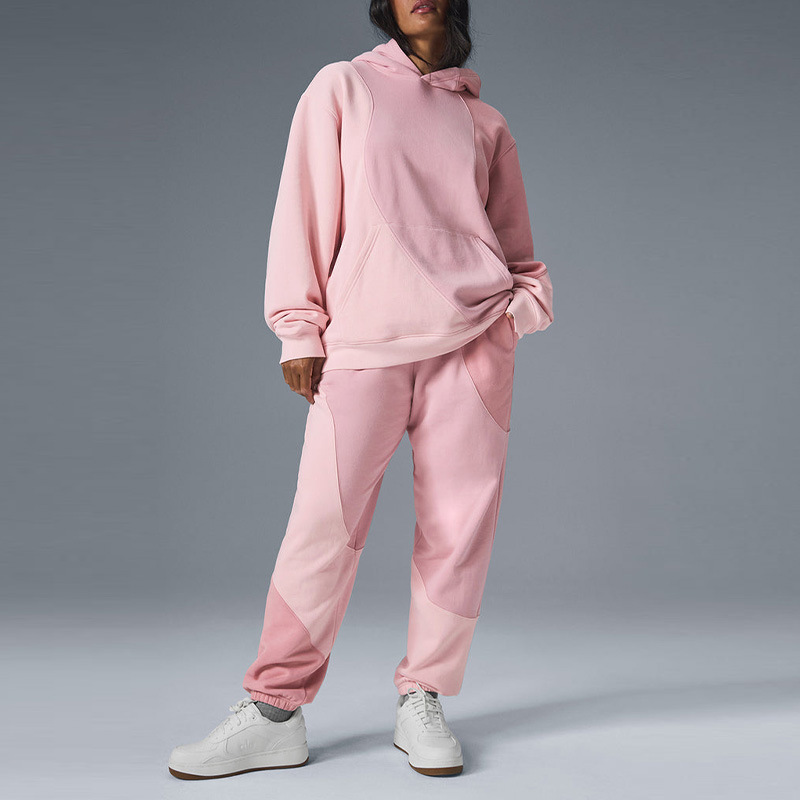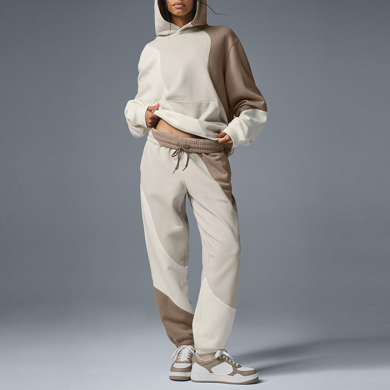 ALO와 같은 스타일의 배색 후드티 세트, 캐주얼하고 부드럽고 편안한 레깅스 바지, 여성용 야외 스포츠 및 피트니스 의류스토어 가기