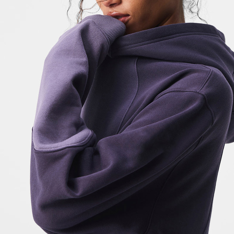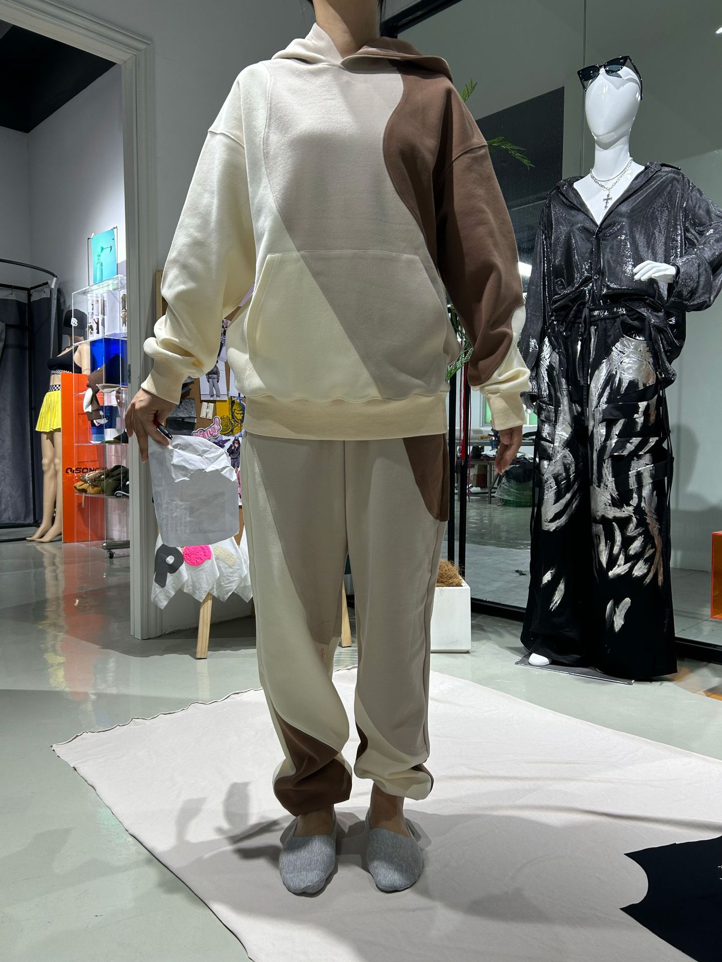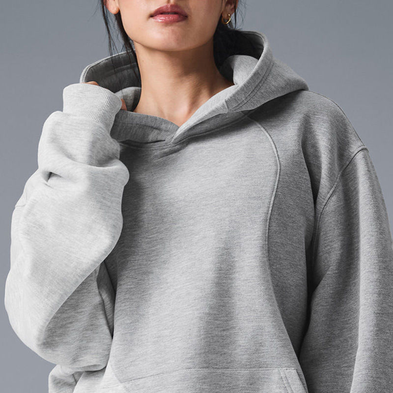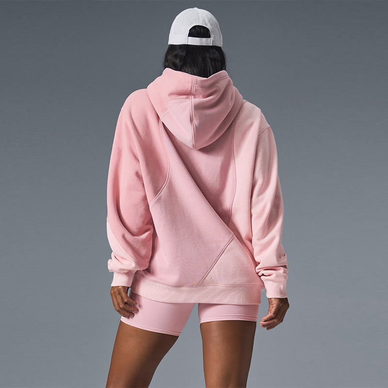 ALO와 같은 스타일의 배색 후드티 세트, 캐주얼하고 부드럽고 편안한 레깅스 바지, 여성용 야외 스포츠 및 피트니스 의류스토어 가기