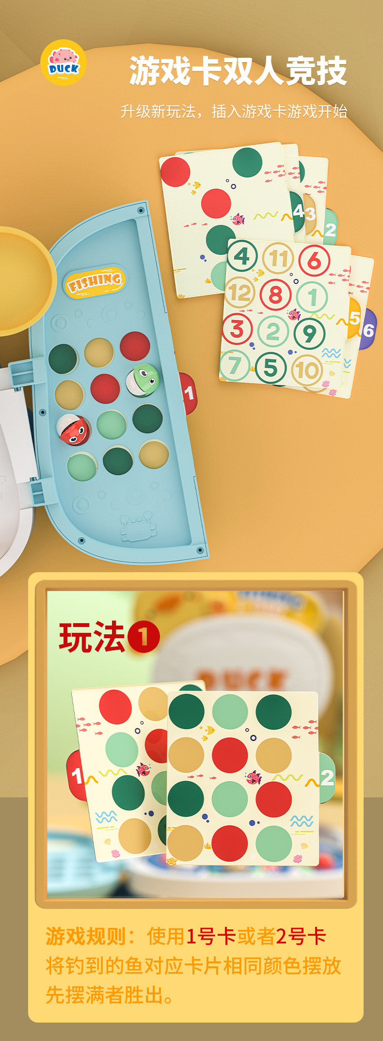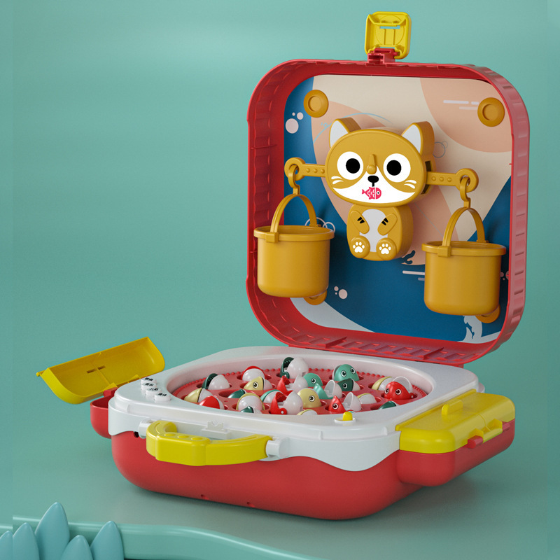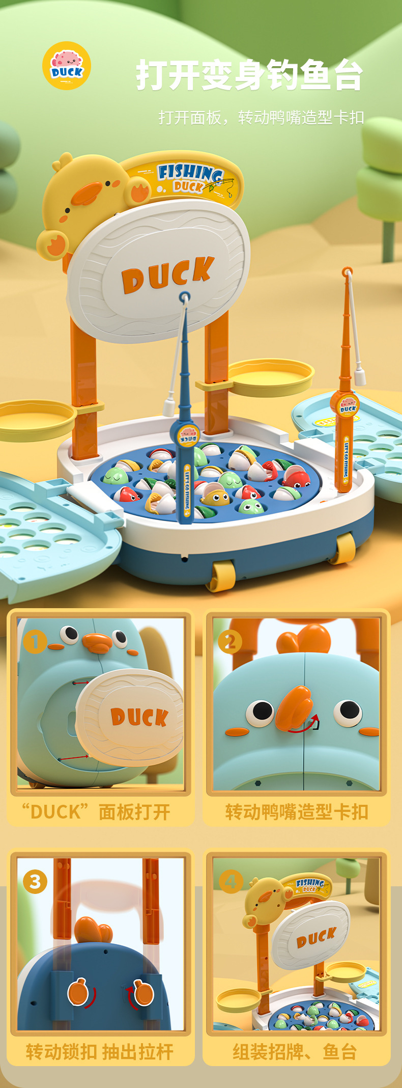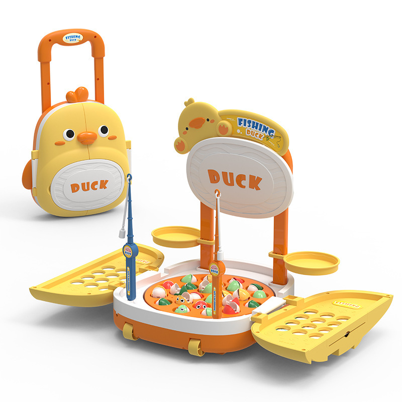 국경 간 귀여운 오리 전기 낚시 트롤리 케이스 어린이 조기 교육 게임 다기능 자기 회전 Diaoyutai 장난감스토어 가기