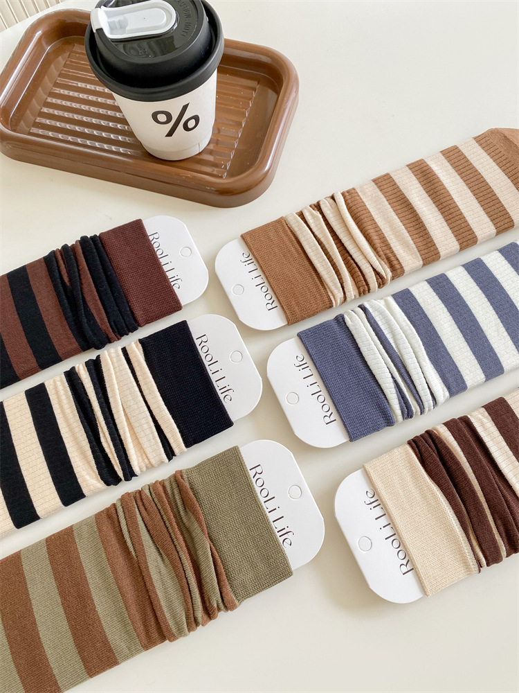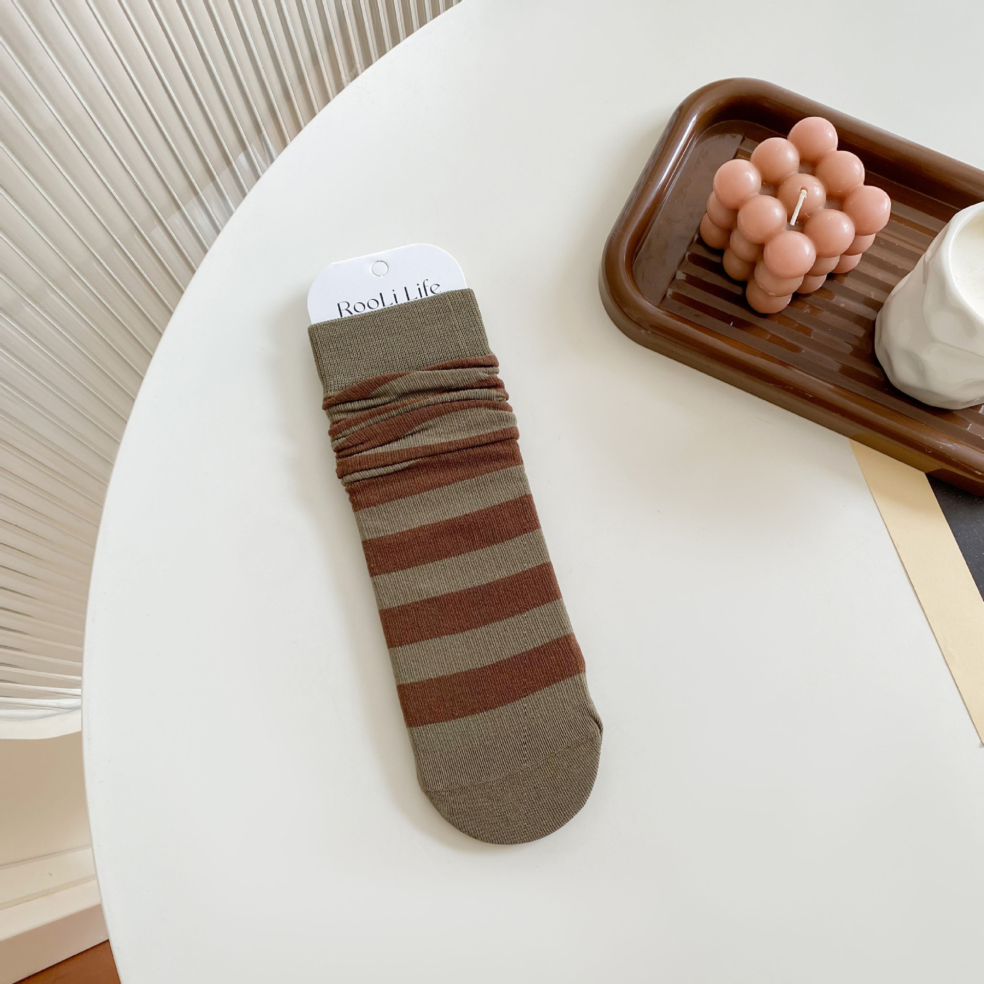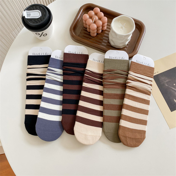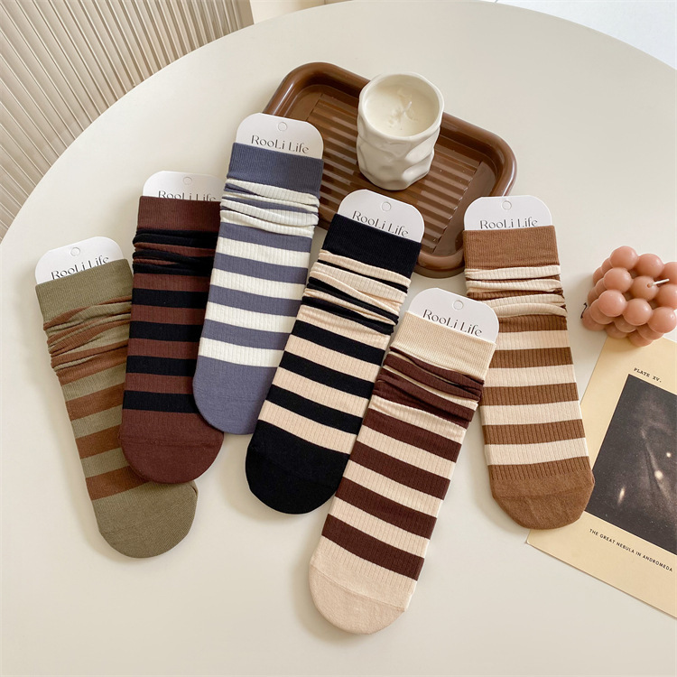 가을과 겨울 스타킹 Maillard Striped Straight Cotton Long Socks 모든 경기 학업 스타일 다크 브라운 뼈없는 여성의 중간 길이 양말스토어 가기