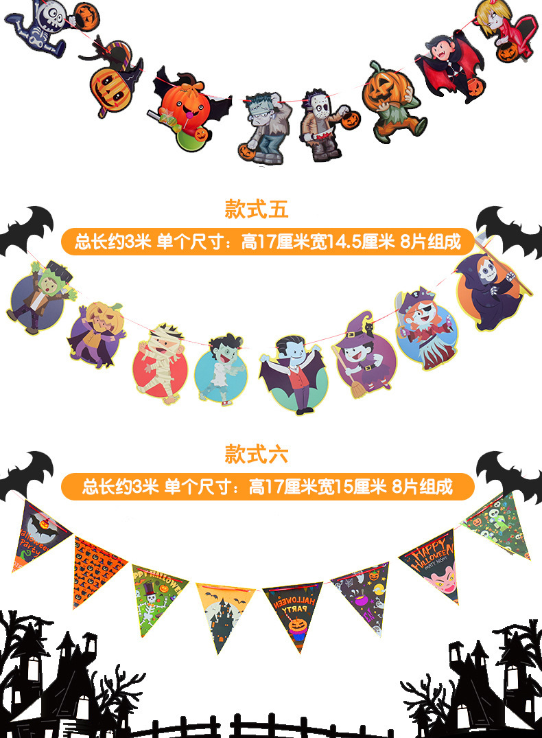 할로윈 장식 풀 깃발을 당겨 꽃 가게 장면 분위기 레이아웃 소품 장식 매달려 깃발 바 깃발