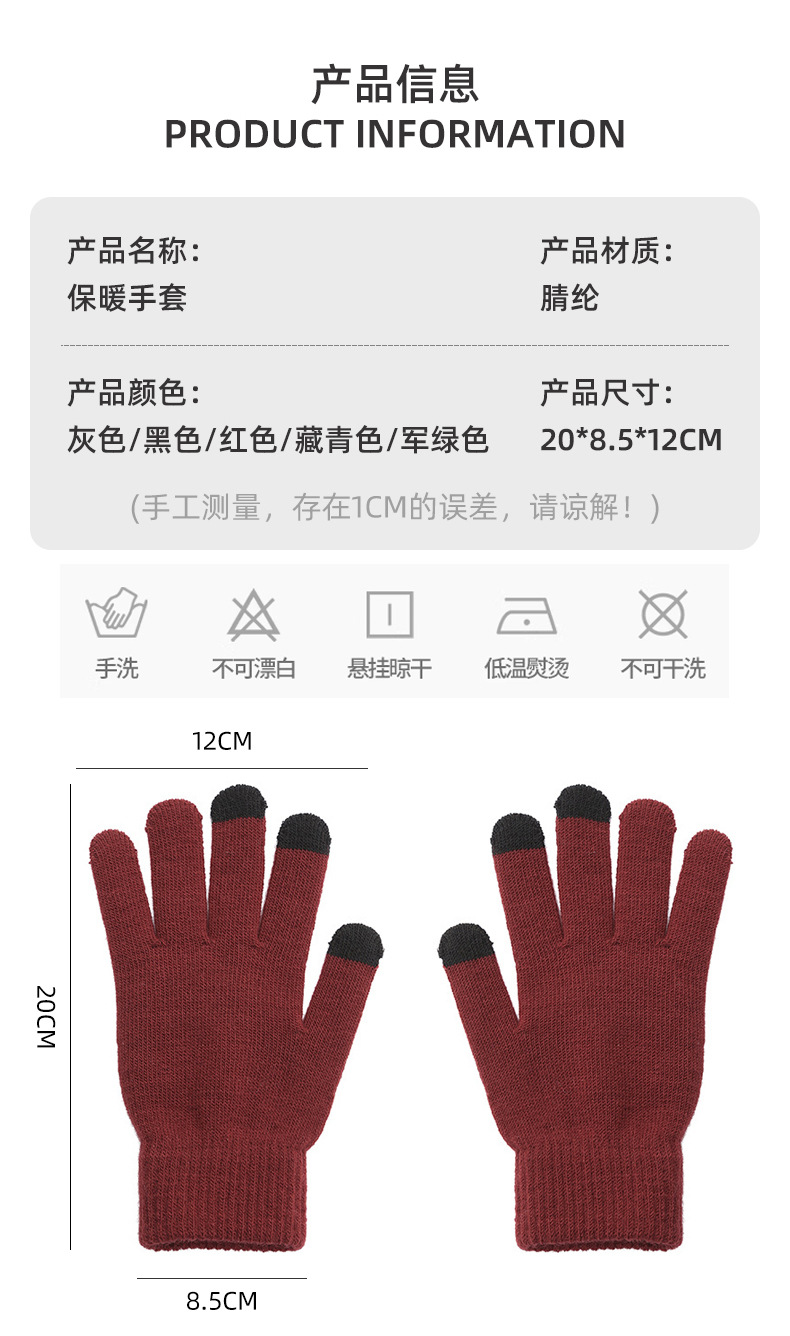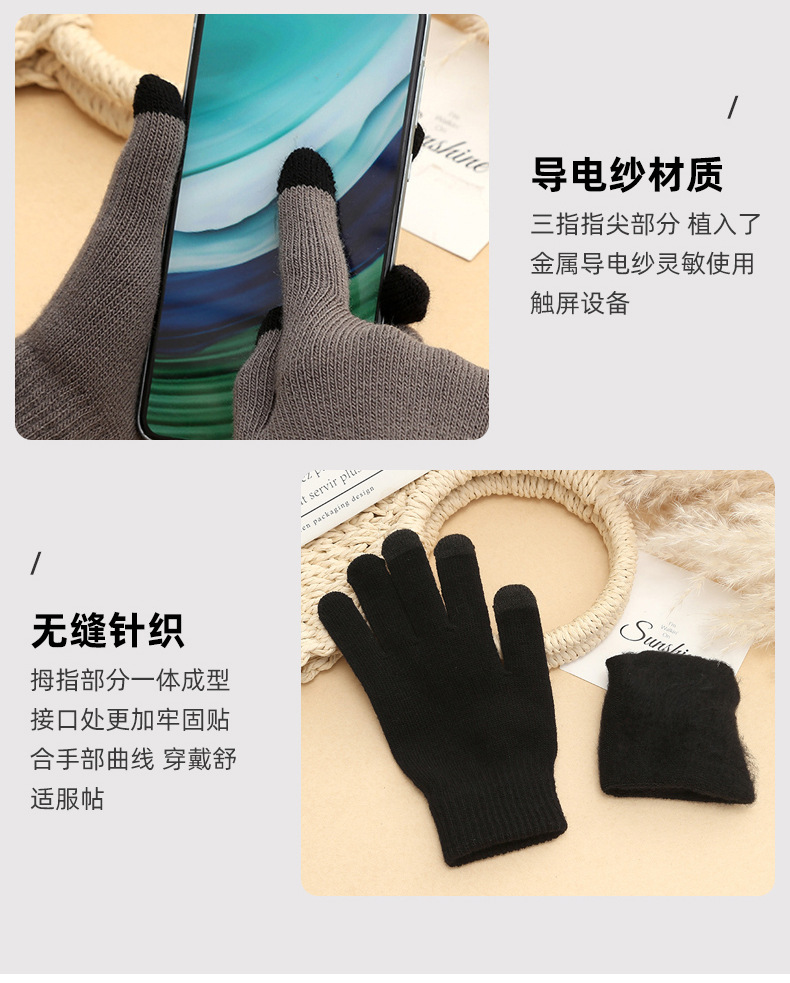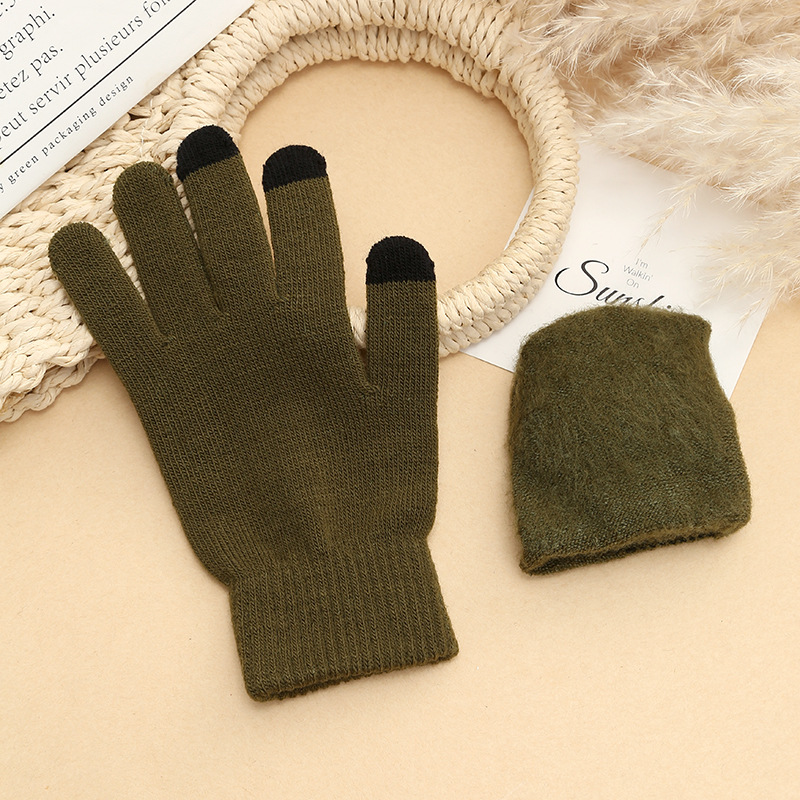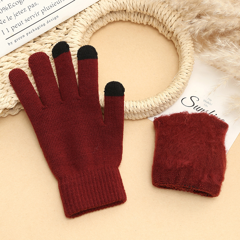 가을과 겨울 니트 따뜻한 장갑 단색 모든 손가락 터치 스크린 장갑 야외 차가운 울 장갑 제조 업체 도매스토어 가기