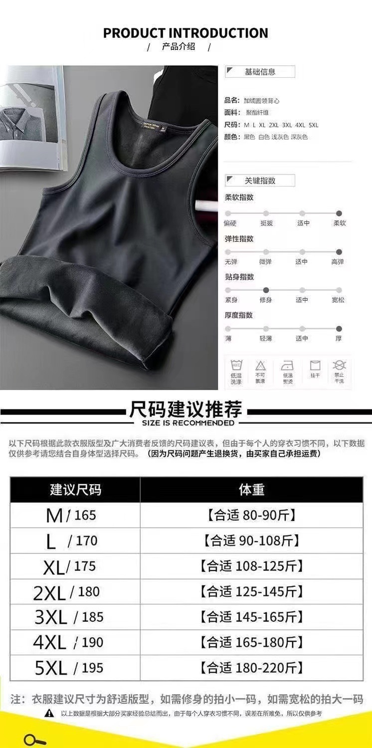 따뜻한 기모 조끼 남성용 젊은 및 중년 플러스 사이즈 솔리드 컬러베이스 셔츠 속옷 웨이스트 코트 탑 옷 가을과 겨울 옷스토어 가기