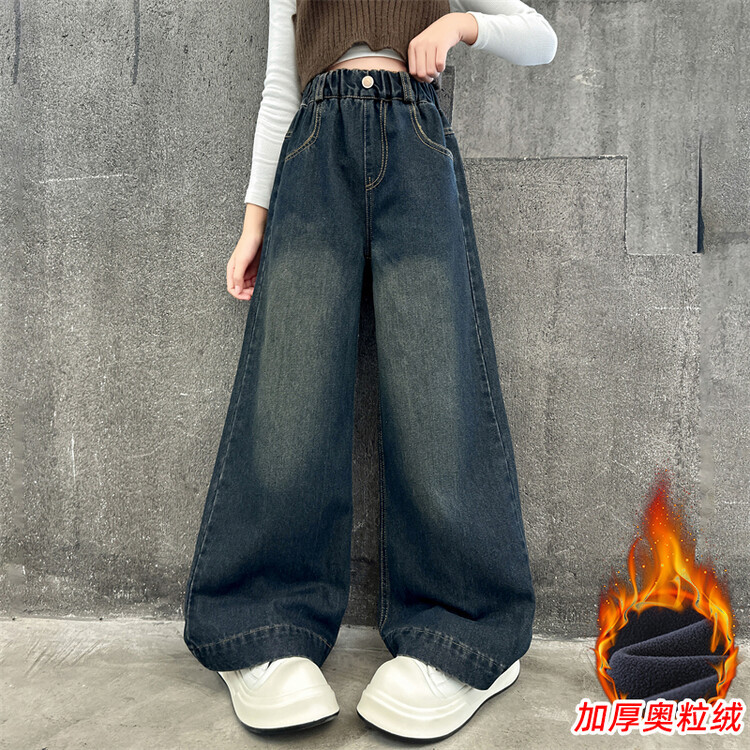 여아용 데님 와이드 팬츠 가을 겨울 2025 신상 아동 중학생 롱 팬츠 큰아이용 스트레이트 가을 바지스토어 가기