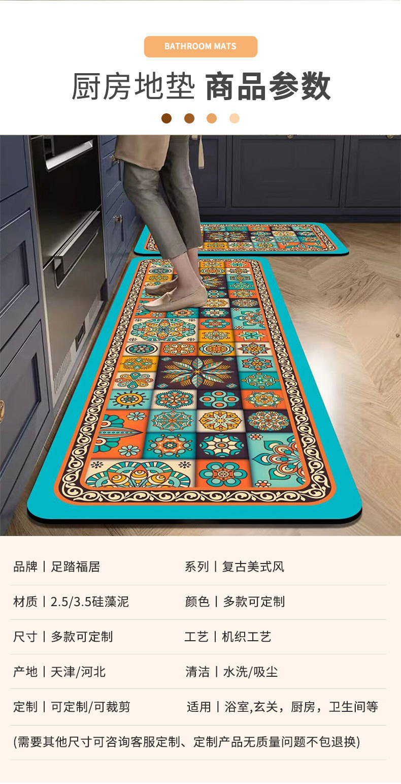 Daifa 주방 바닥 매트 새로운 diatom 진흙 특수 내유성 얼룩 방지 와이프가없는 카펫 완전 스프레드 얼룩을자를 수 있습니다.스토어 가기