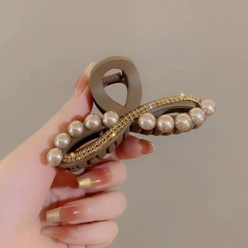 고급 라인스톤 비드 활 그랩 클립 여성용 머리 머리 볼륨 상어 클립 헤어핀 헤어핀 우아한 헤드웨어