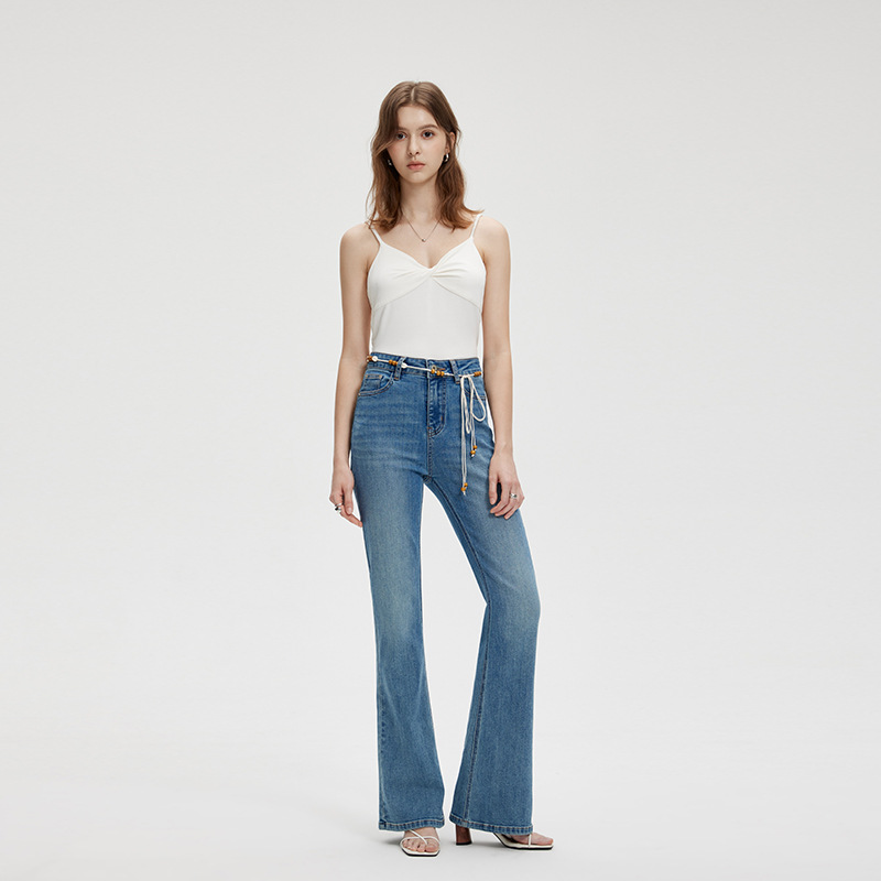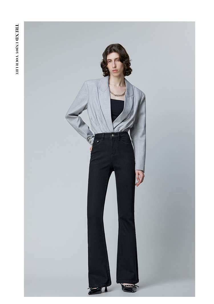 벨벳 안감의 새로운 스타일 여성용 데님 팬츠, 고급 디자인, 하이웨이스트, 슬림핏, 다용도, 심플하고 고급스러운 품질의 부츠컷 팬츠