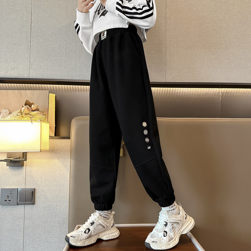 소녀 바지 봄과 가을 2024 새로운 스타일 어린이 운동복 어린이 캐주얼 다리 바지 서양식 가을 착용 어린이 바지 느슨한