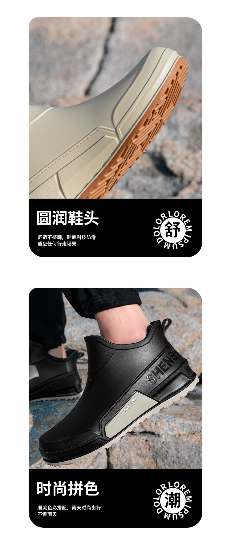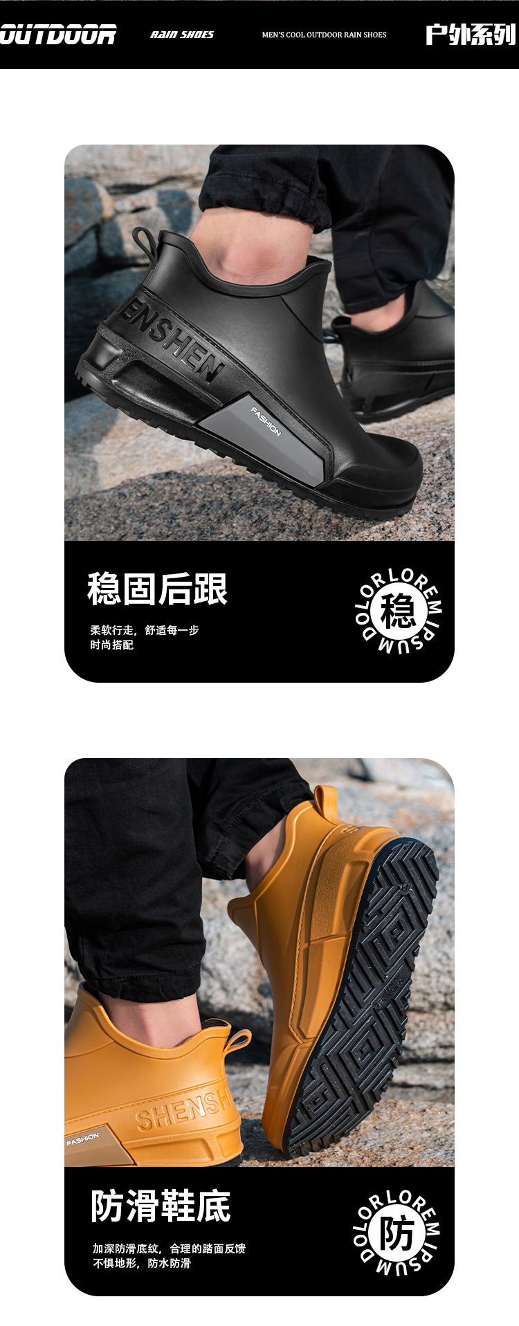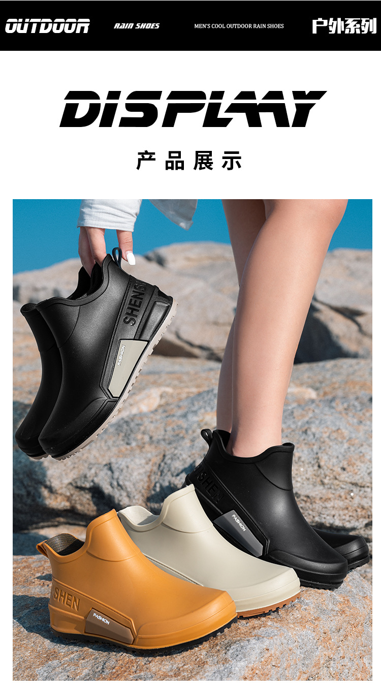 국경 간 남녀 커플 패션 짧은 비 신발 미끄럼 방지 방수 장화 야외 캠핑 낚시 고무 신발 물 신발