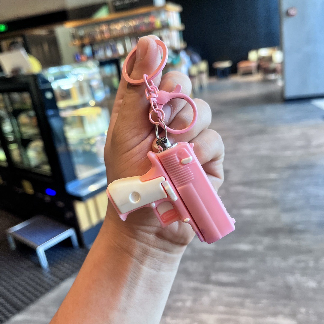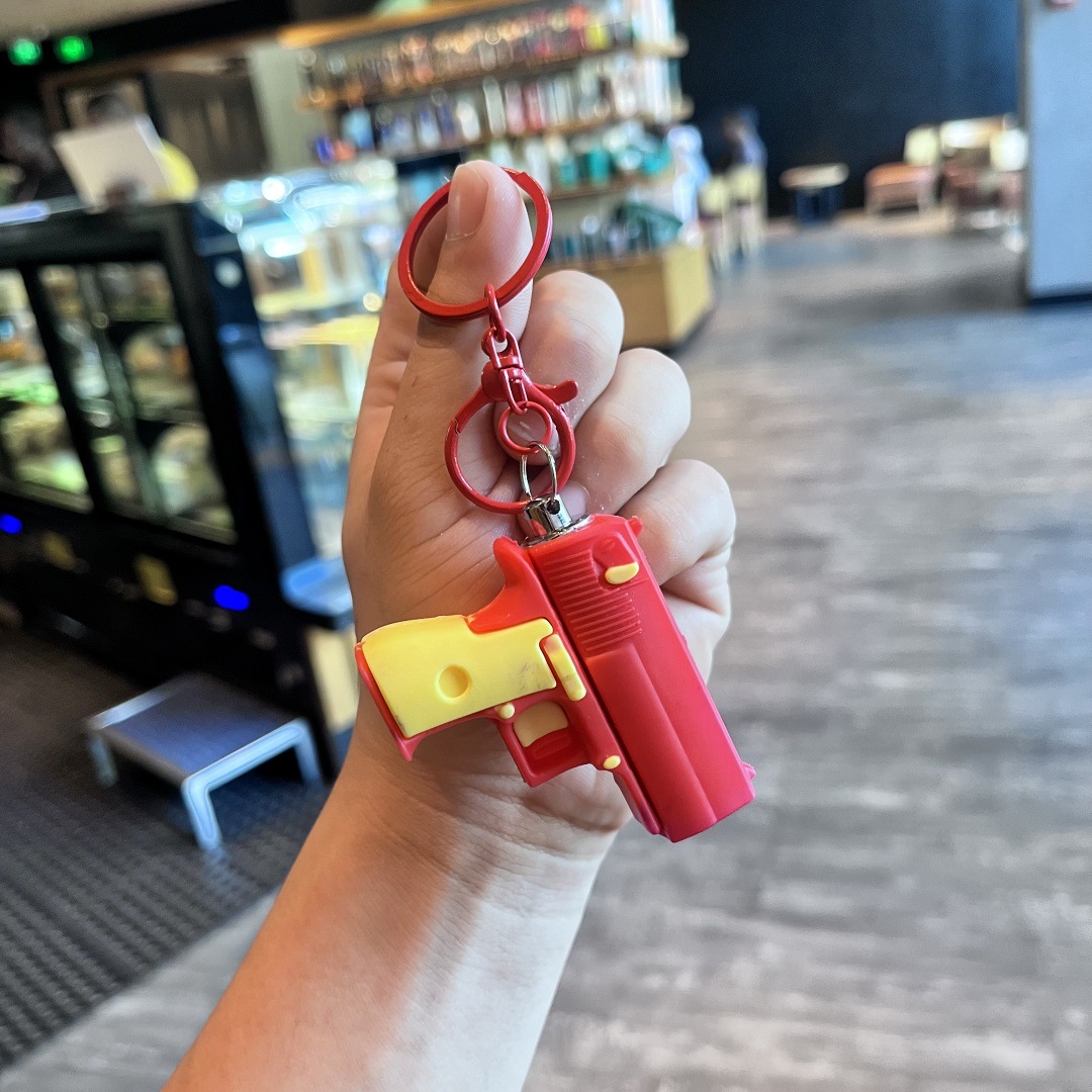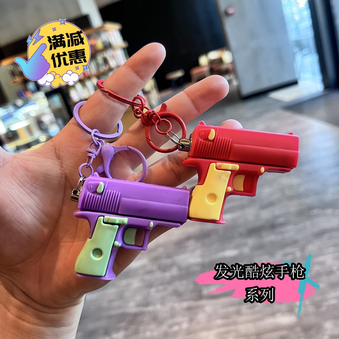 새로운 빛나는 권총 손전등 키 체인 어린이 장난감 학생 학교 가방 펜던트 인형 기계 선물 도매 잡아