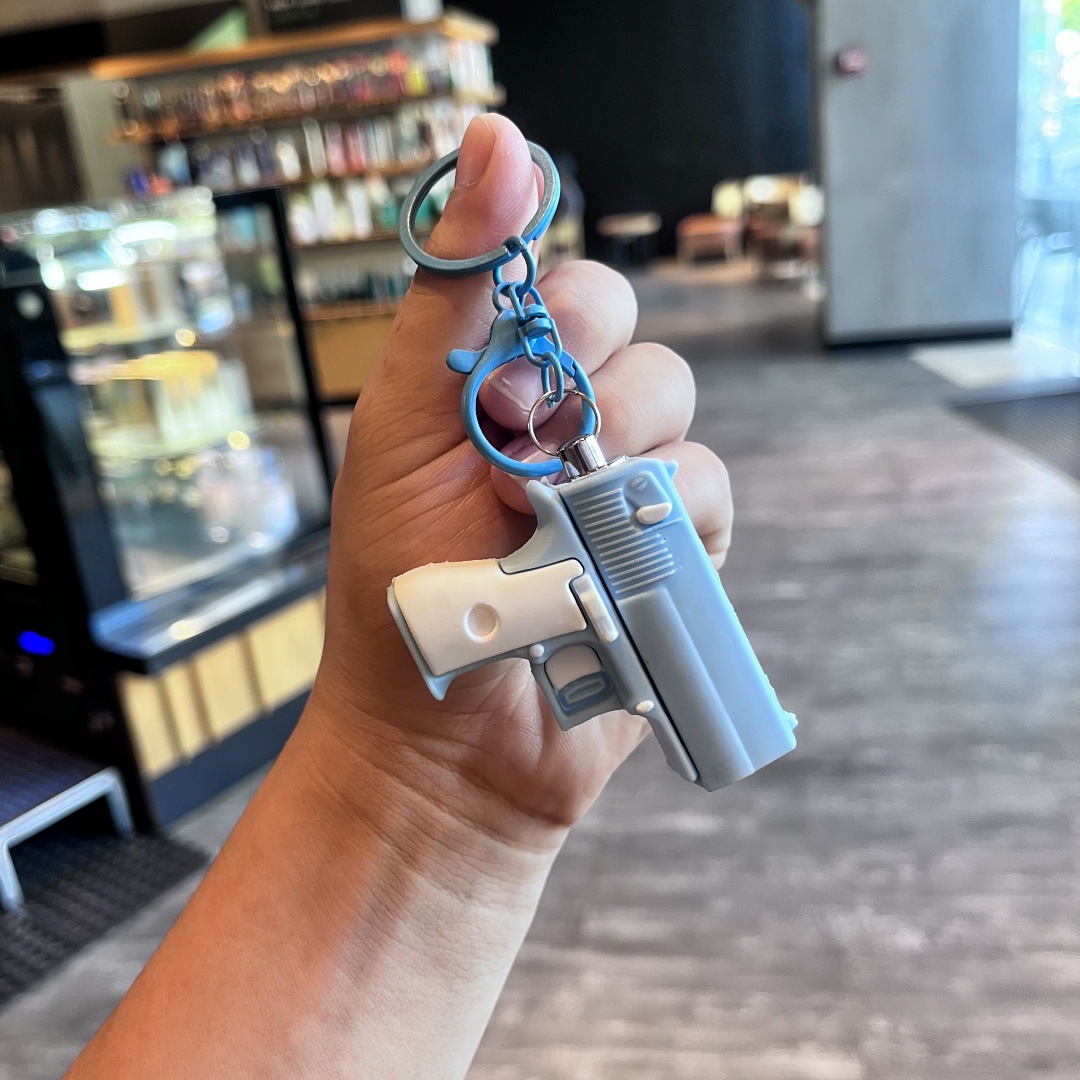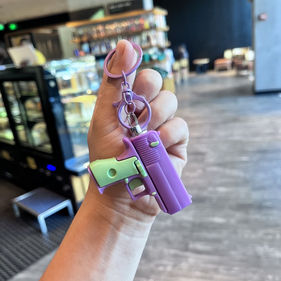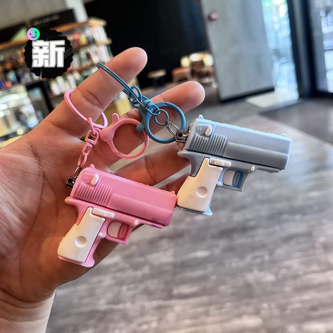 새로운 빛나는 권총 손전등 키 체인 어린이 장난감 학생 학교 가방 펜던트 인형 기계 선물 도매 잡아