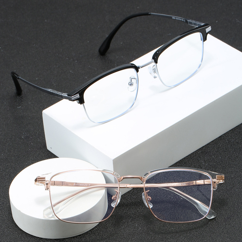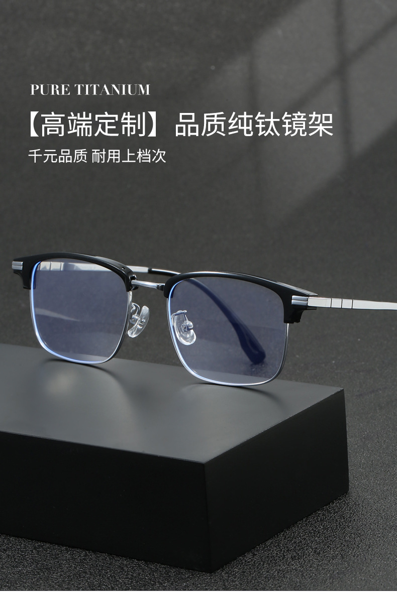 비즈니스 순수 티타늄 안경 프레임 초경량 남성 복고풍 대략적인 안경 프레임 광학 근시 평면 렌즈 안티 블루 라이트 도매