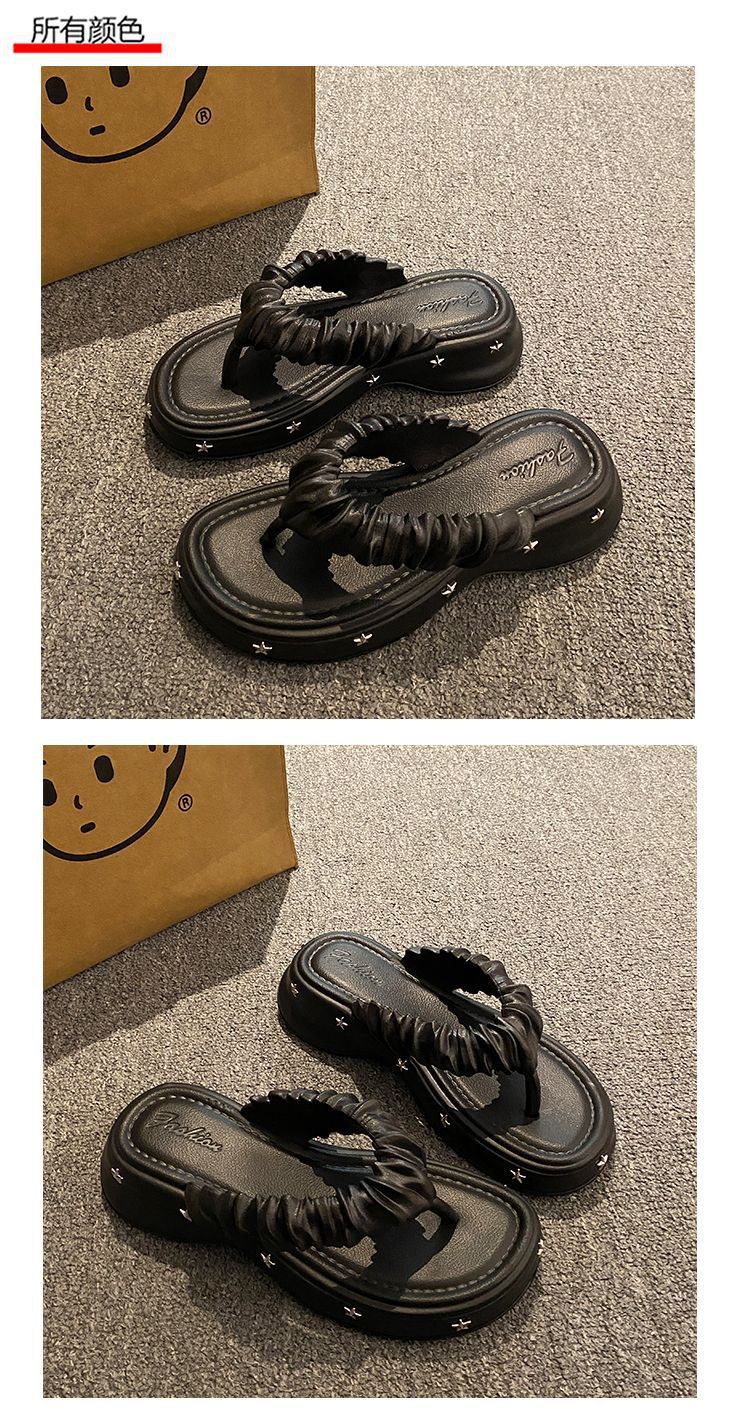 Y2 스타 플립 플롭 여성 아우터 여름 두꺼운 밑바닥 비 슬립 높이 증가 클립 신발 여성의 2024 새로운 올 매치 패션 슬리퍼스토어 가기