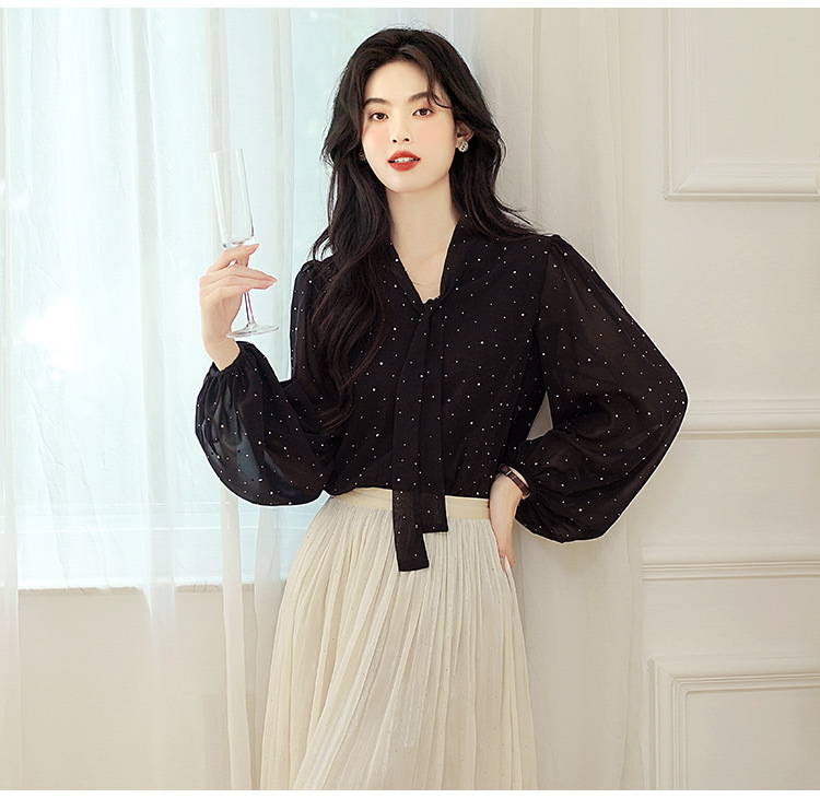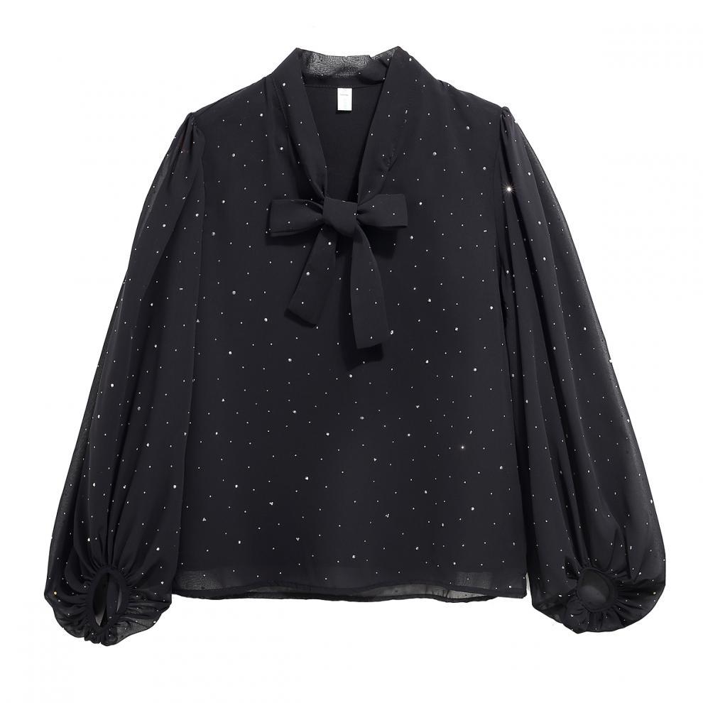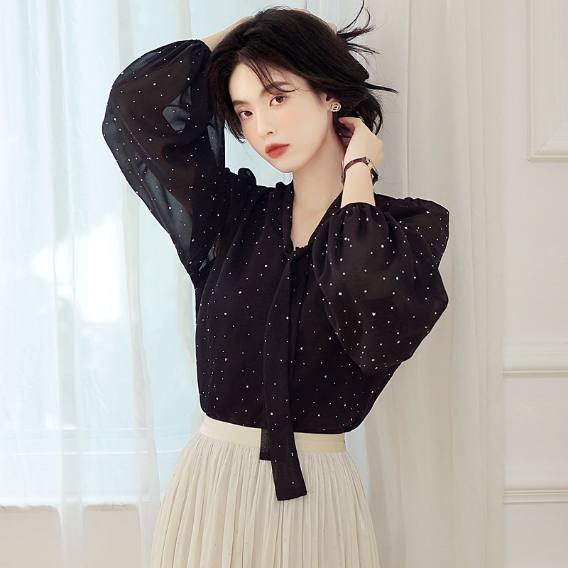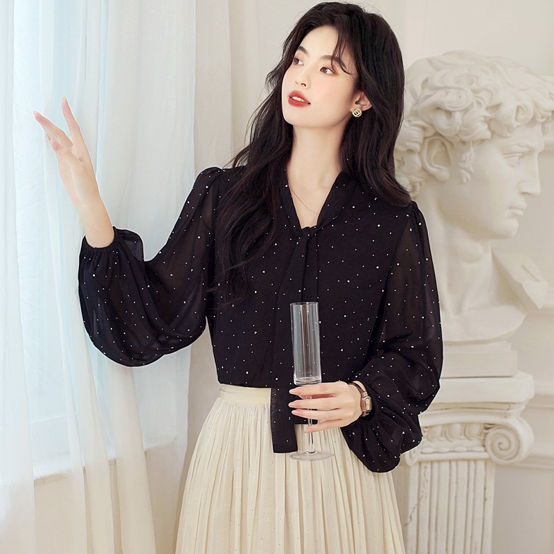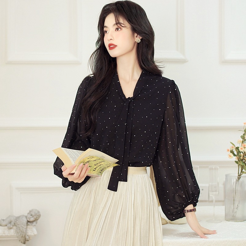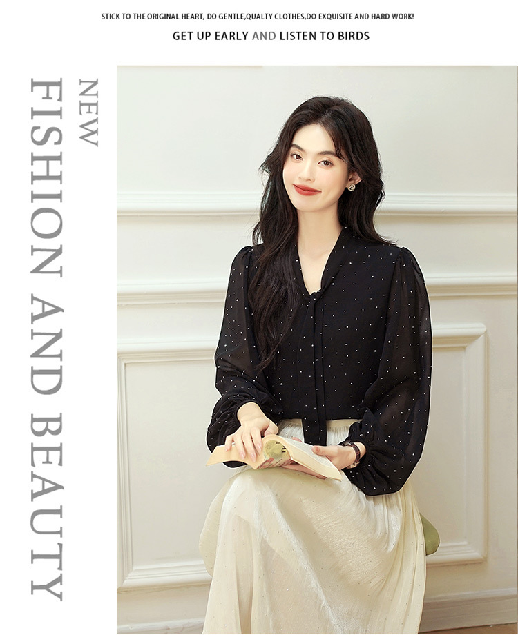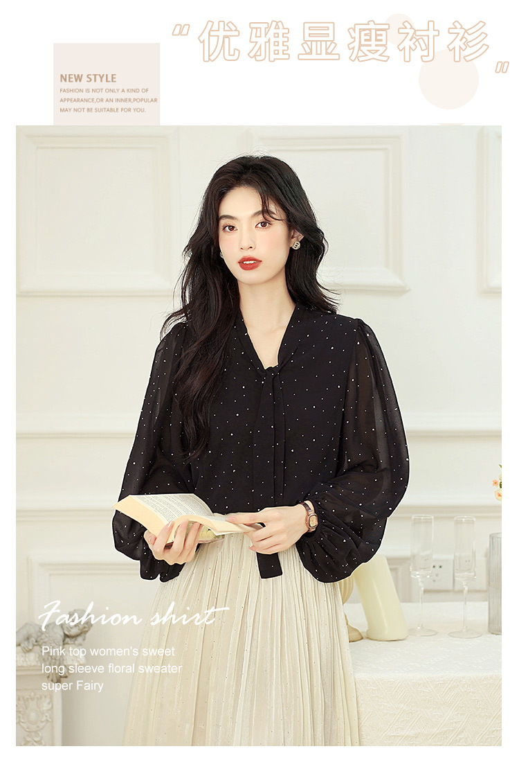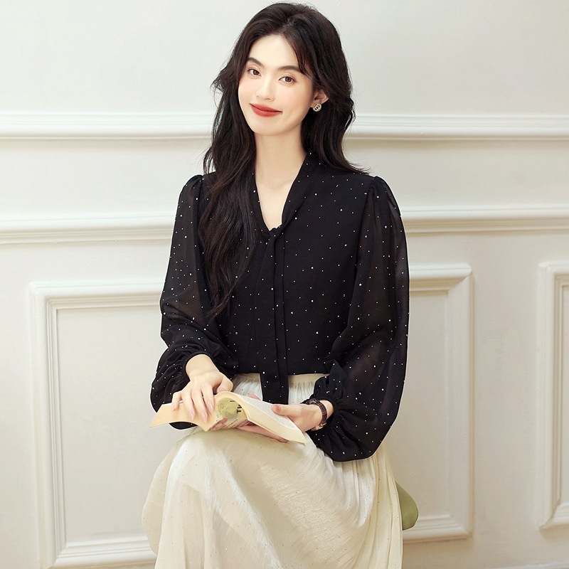 가을 2024 프랑스 레트로 스트랩 셔츠 최고 여성 기질 통근 디자인 감각 느슨한 긴 소매 쉬폰 셔츠스토어 가기